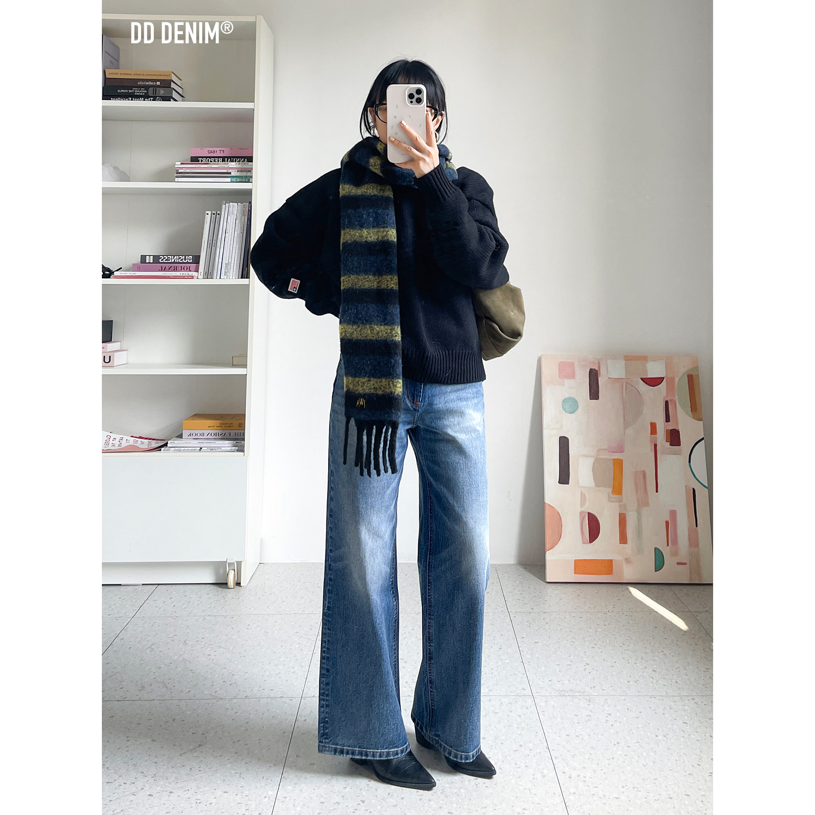DD「Back to 90s」复古重工洗水中低腰宽松直筒竹节牛仔裤女秋冬