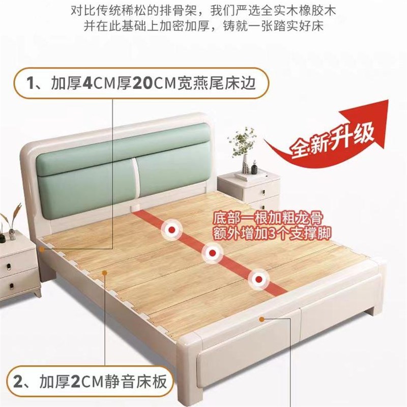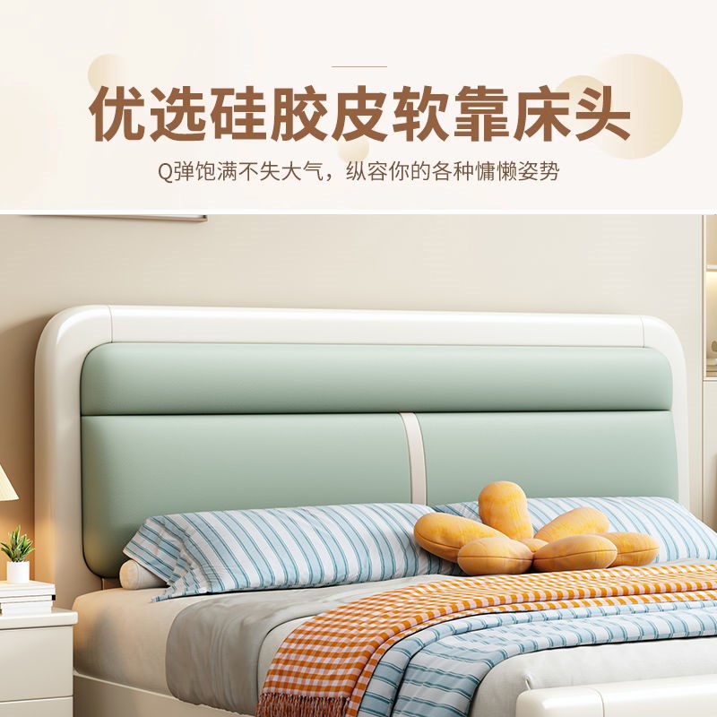 软包实木床现代简约1.8米主卧室双人大床1.5米婚床北欧轻奢储物床