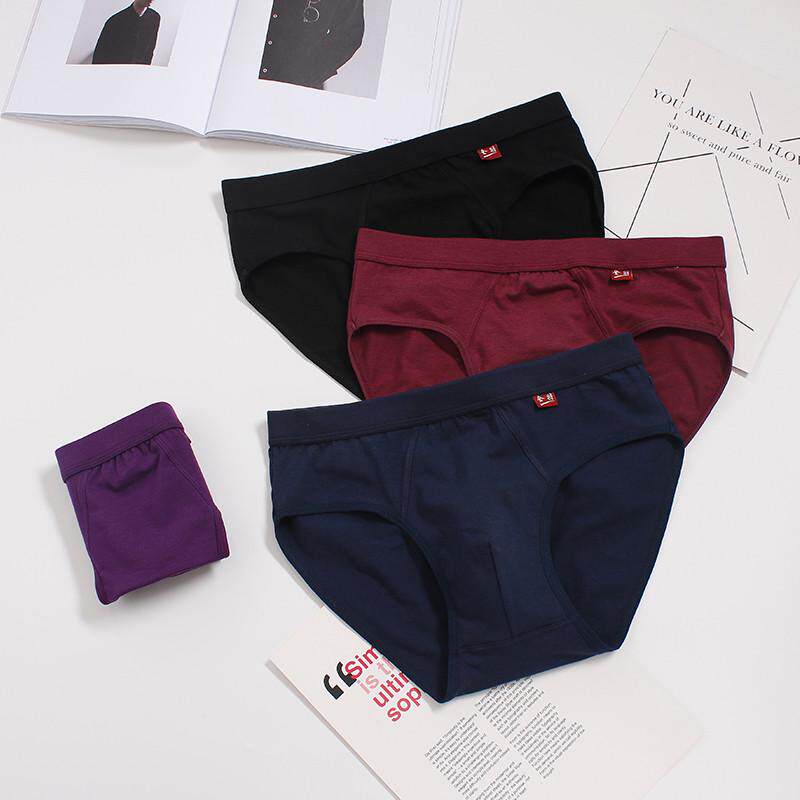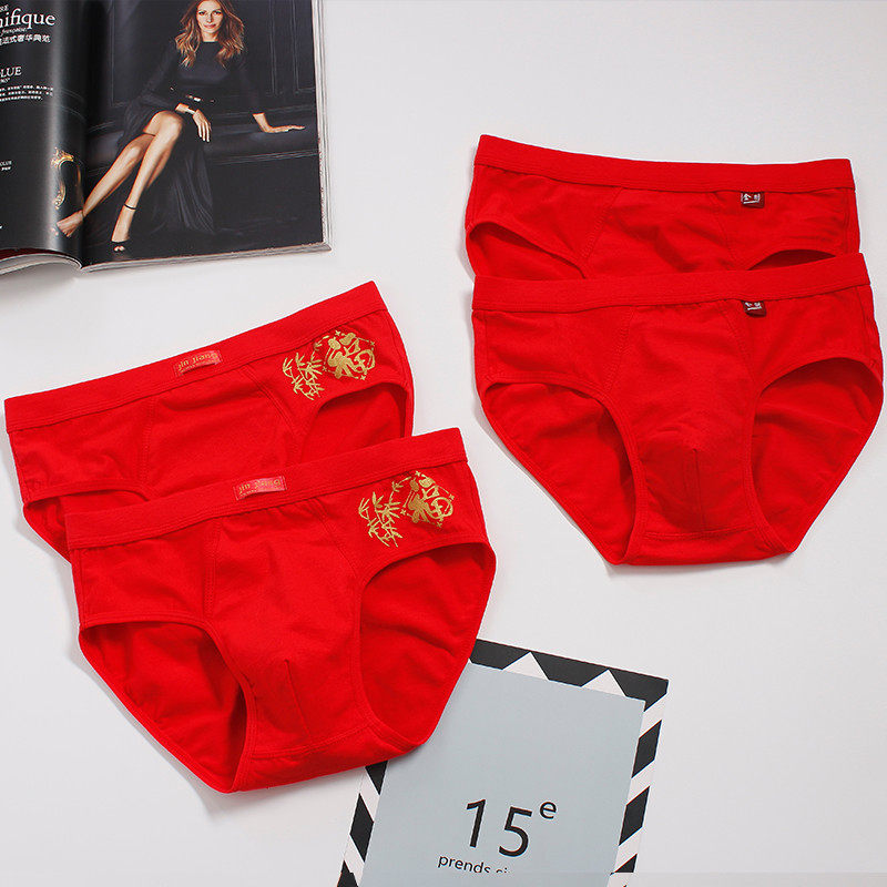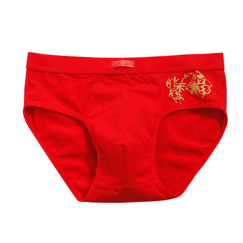 男三角裤将4条装本命年男士内裤短100%裤头金福大红色全棉纯棉字