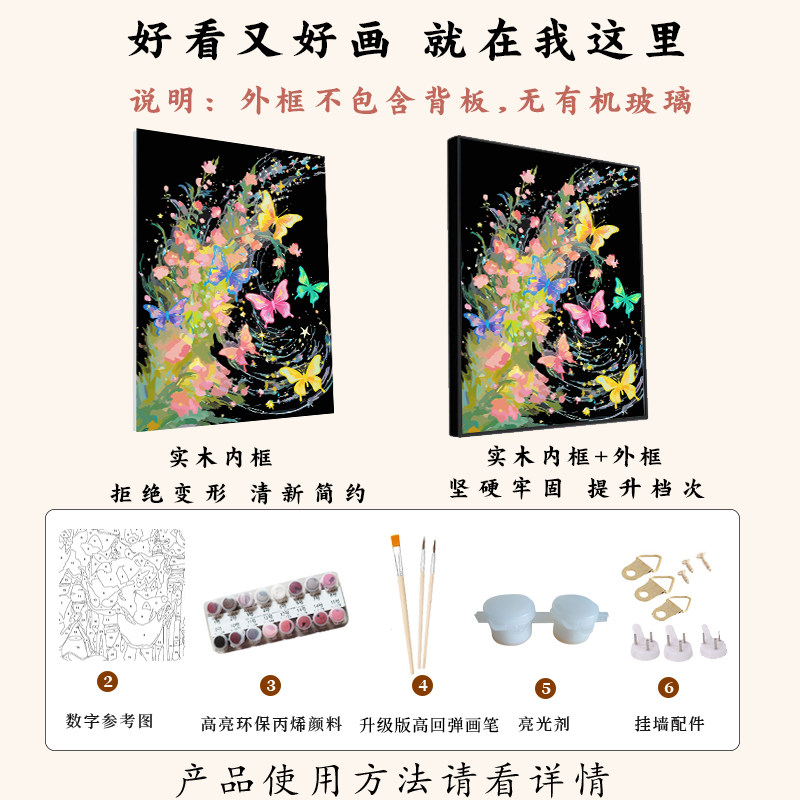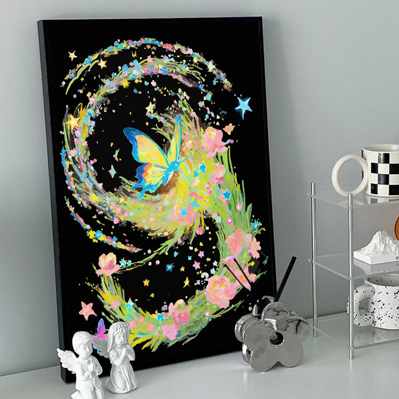 蝴蝶精灵多巴胺卡通数字油画diy填充填色手工丙烯卡通卧室装饰画