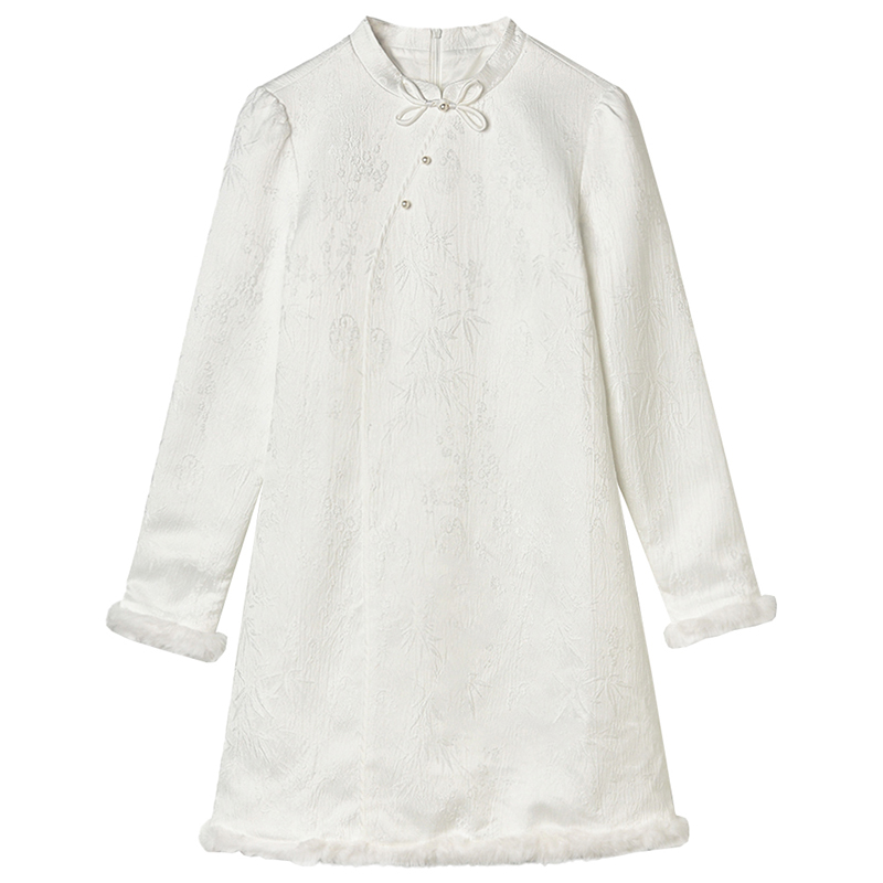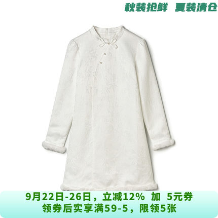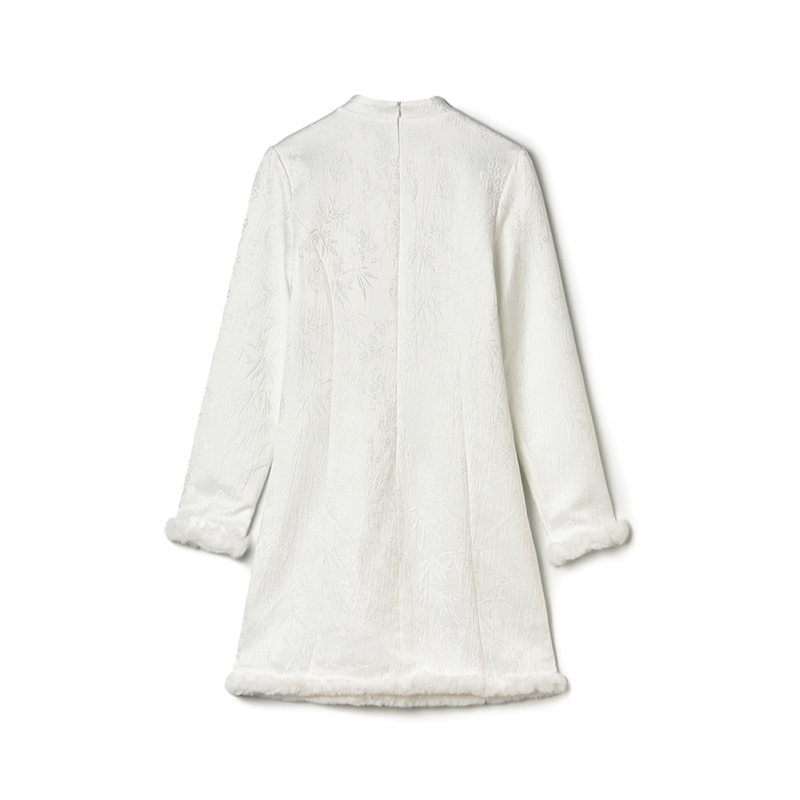 RU0A0030毛绒边中长裙国风立领裙子连衣裙女10.2秋