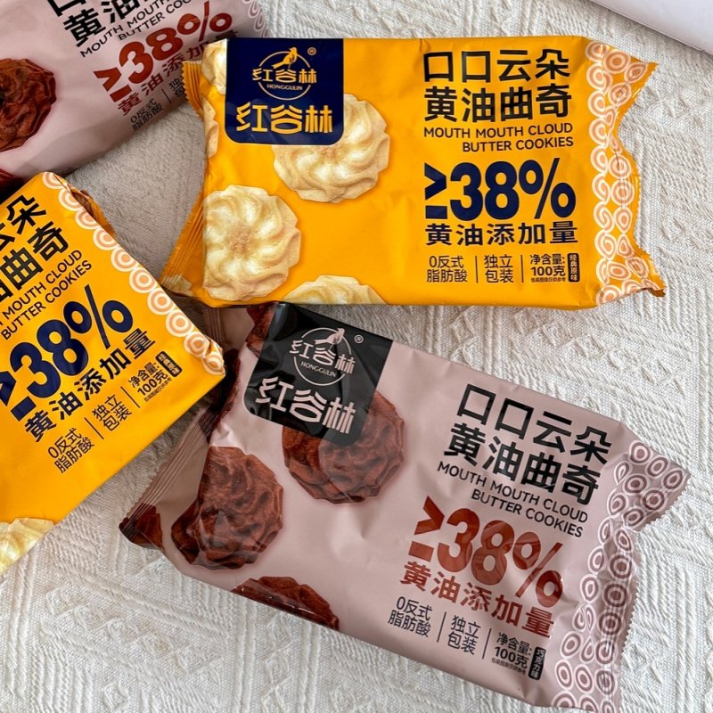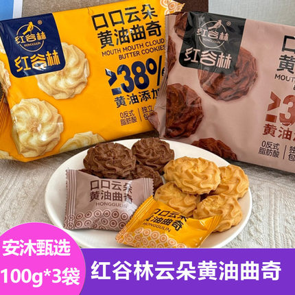红谷林云朵曲奇黄油曲奇100g*3盒二种口味独立包装新鲜正品办公室