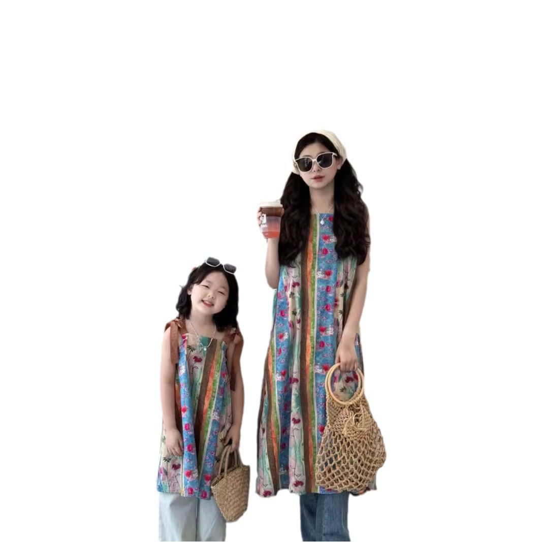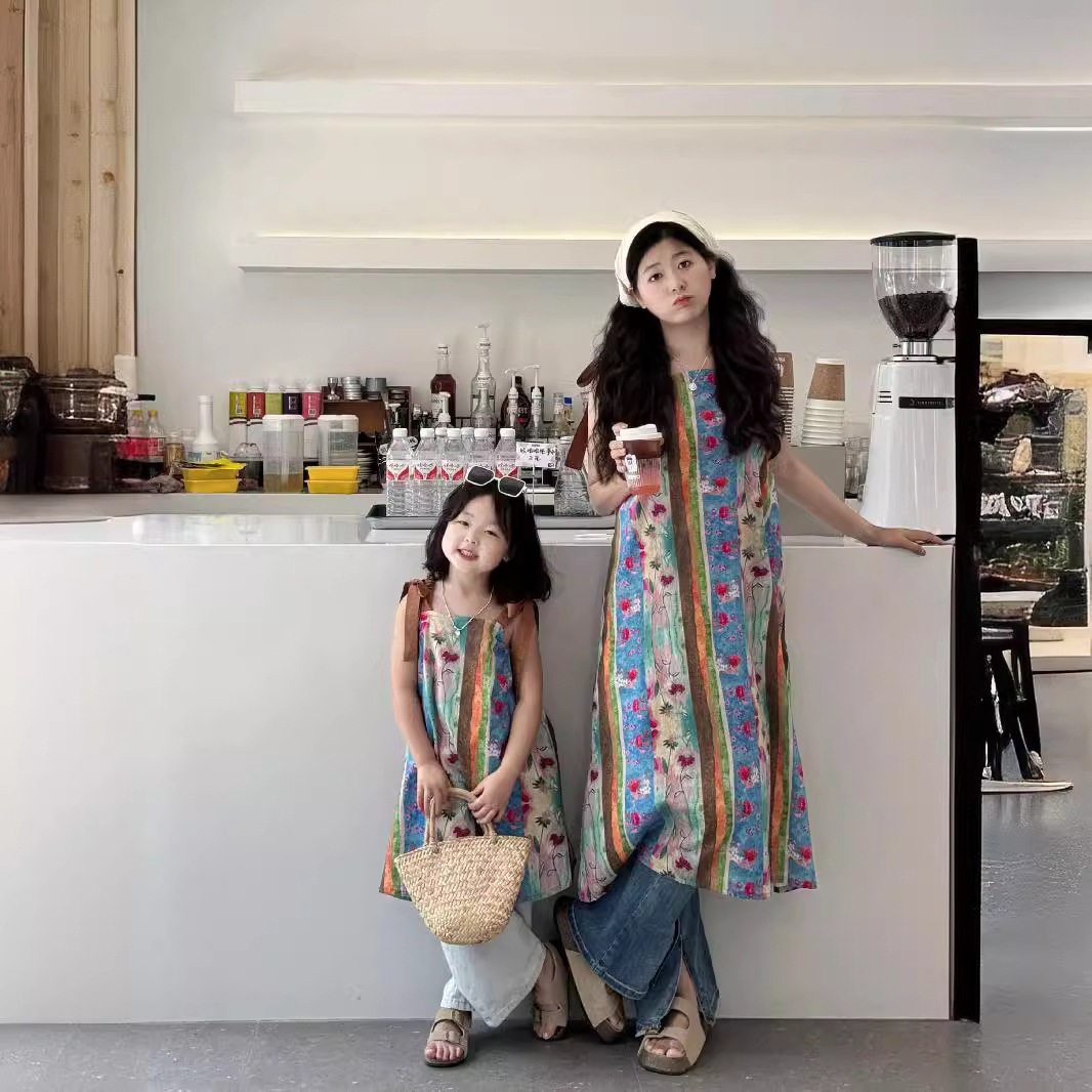 不一样的亲子装连衣裙夏季吊带薄款女童长裙度假沙滩风妈妈母女装