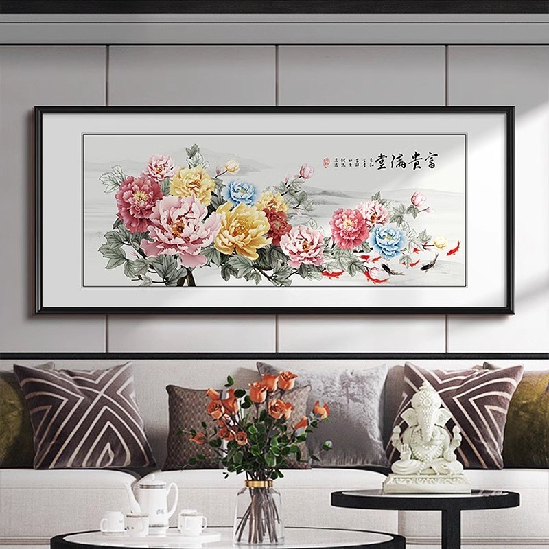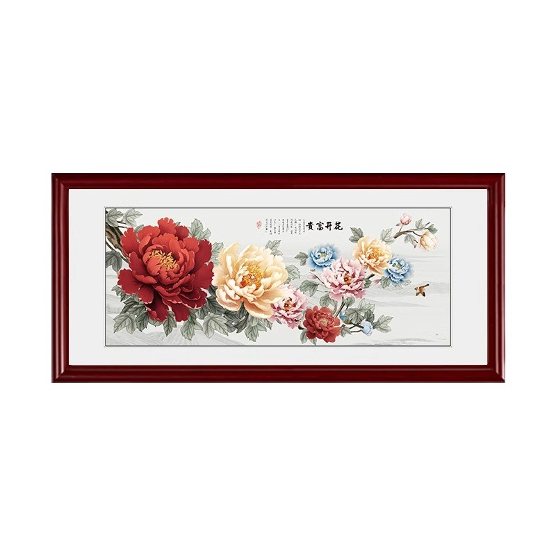 牡丹花客厅挂画花开富贵中堂大气国画办公室装饰画新中式横幅壁画