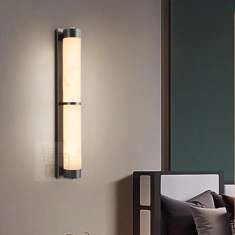 新中式全铜壁灯客厅电视背景墙灯过道现代简约云石壁灯卧室床头灯
