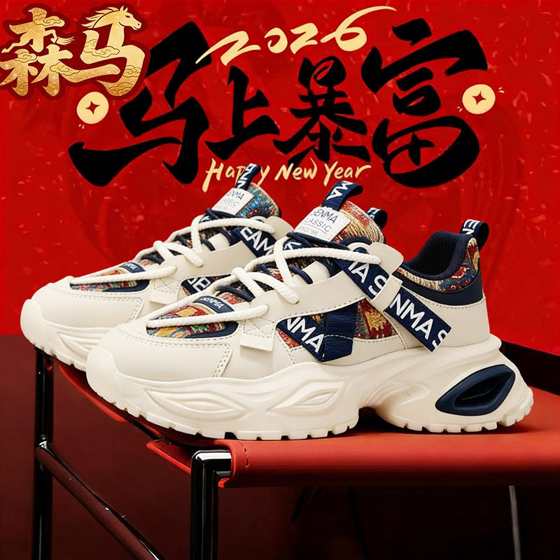 森马网红爆款男鞋冬季运动休闲本命年红色百搭厚底内增高老爹潮鞋