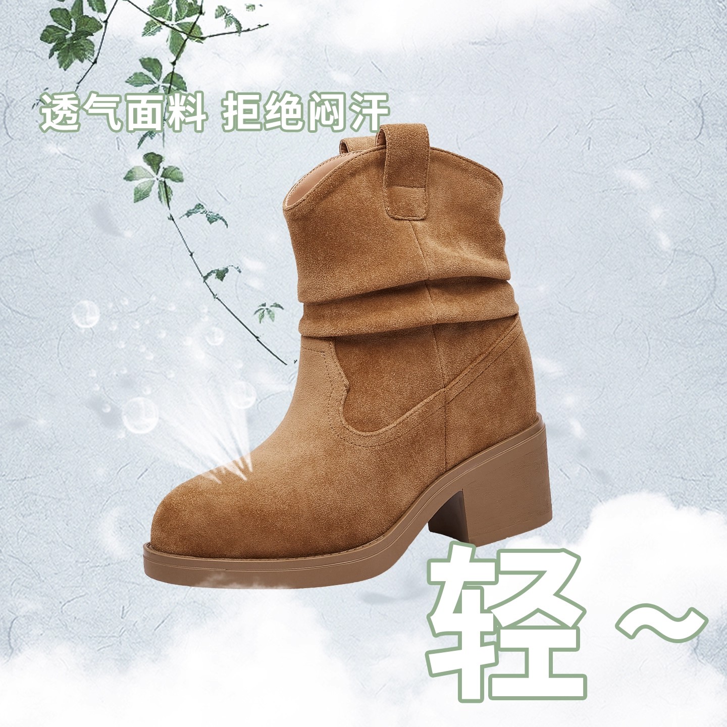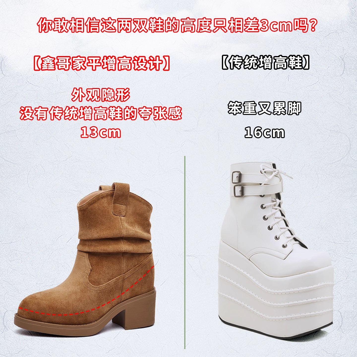 增高13厘米中筒高跟堆堆靴子女2025年秋季新款厚底粗跟美拉德短靴