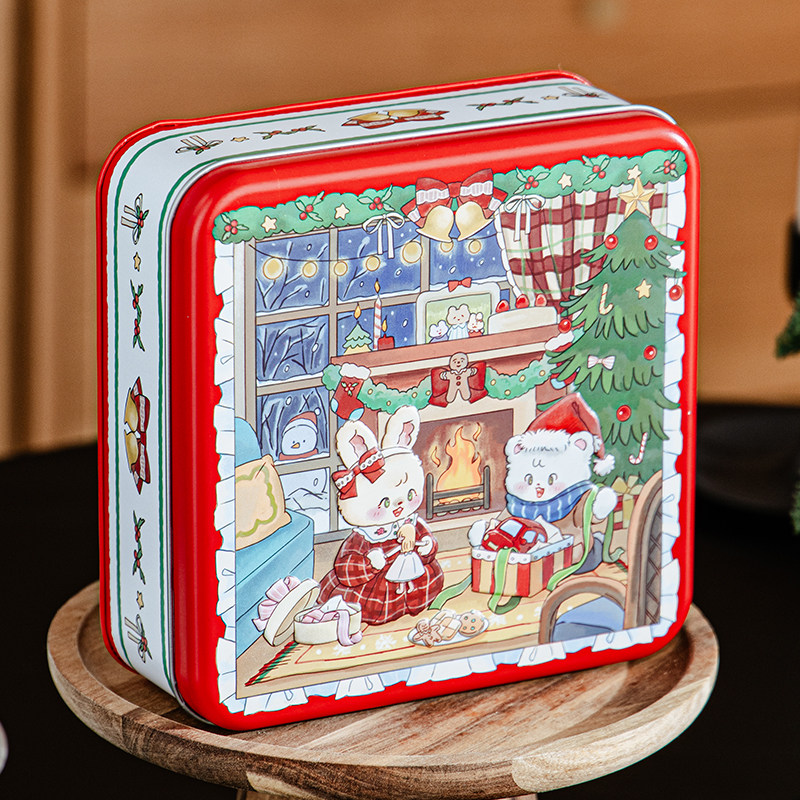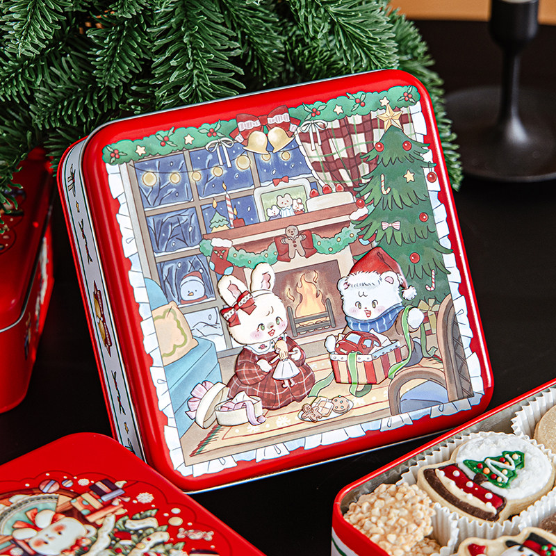 圣诞节曲奇饼干包装盒铁盒空糖果铁罐礼物小盒子方形马口铁收纳罐