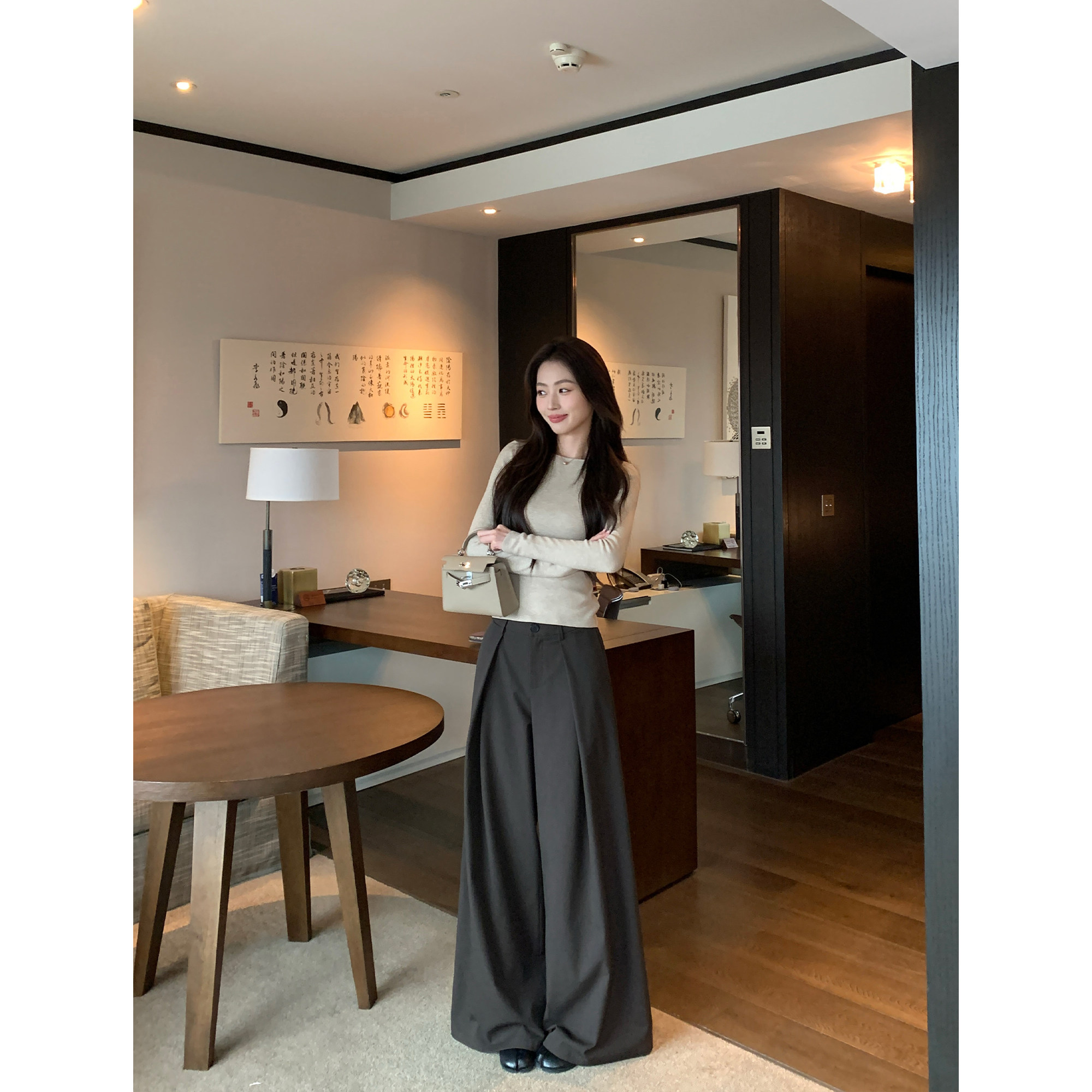 pusumede 黑林岛屿 黑色压褶阔腿西装裤女宽松设计感休闲长裤子