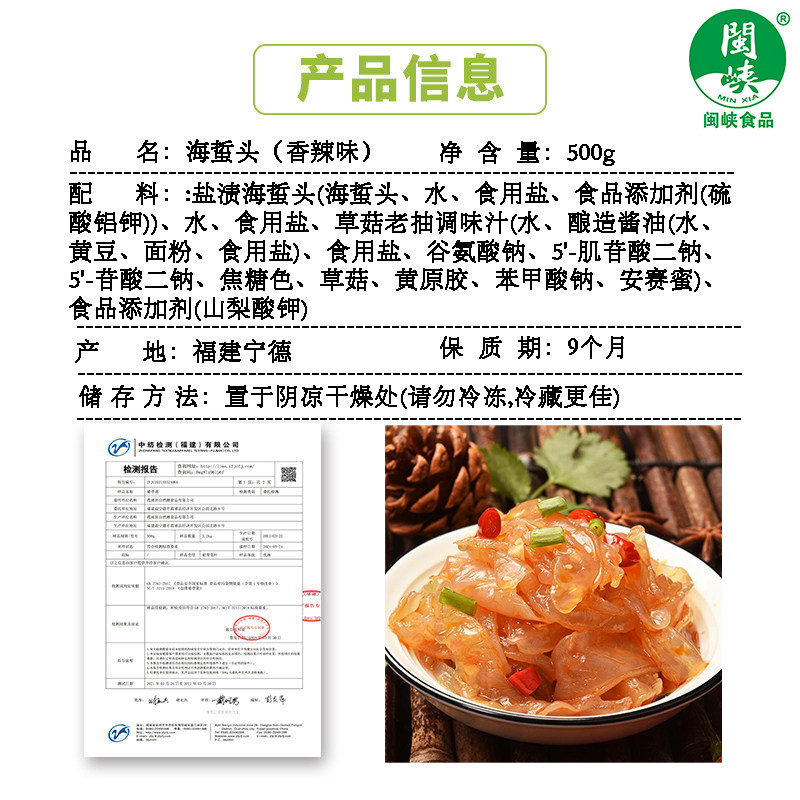 闽峡福建野生即食海蜇头200gX3包开袋即食脆爽非海蜇丝内有带料包