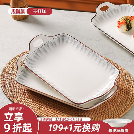 川岛屋双耳鱼盘家用长方形装鱼碟