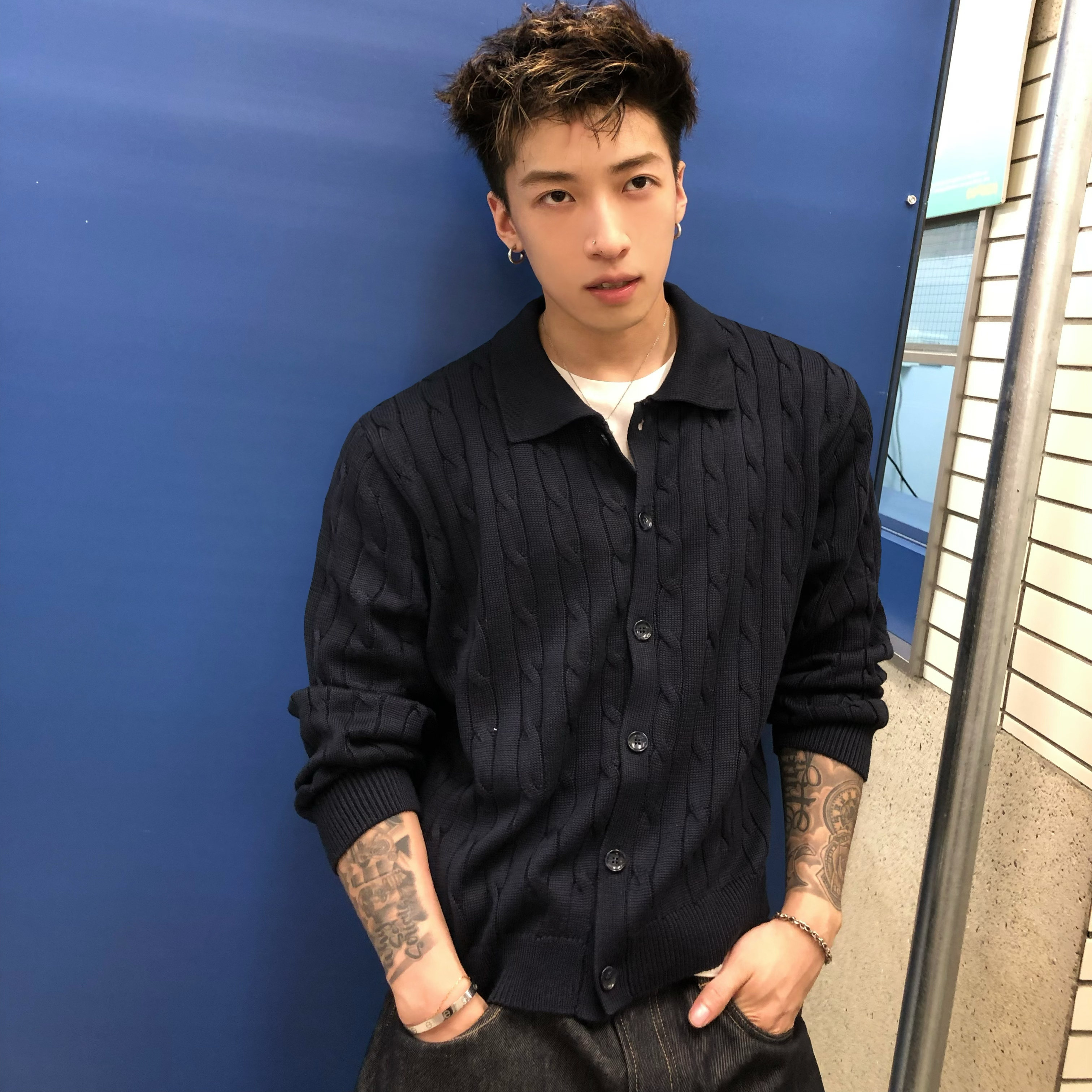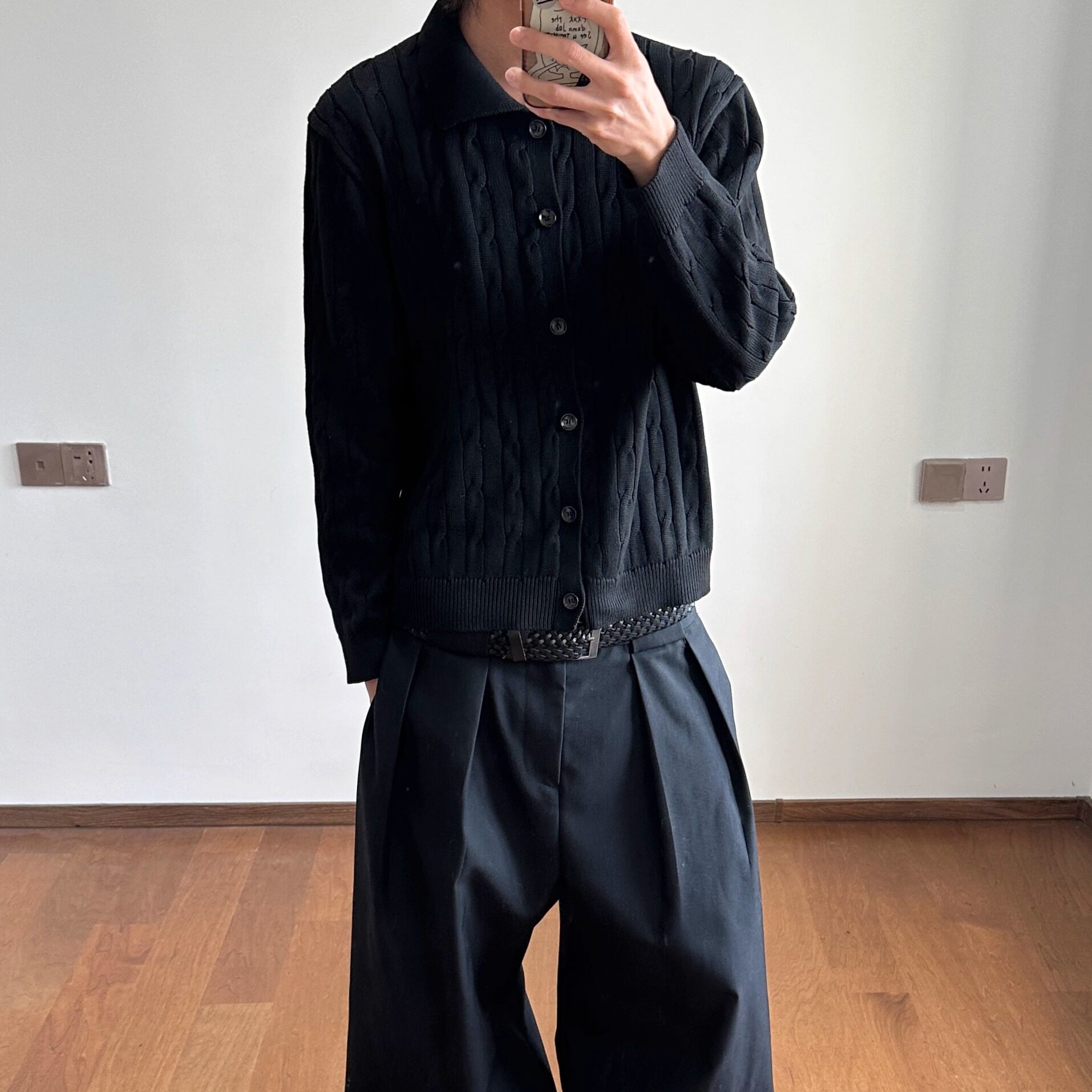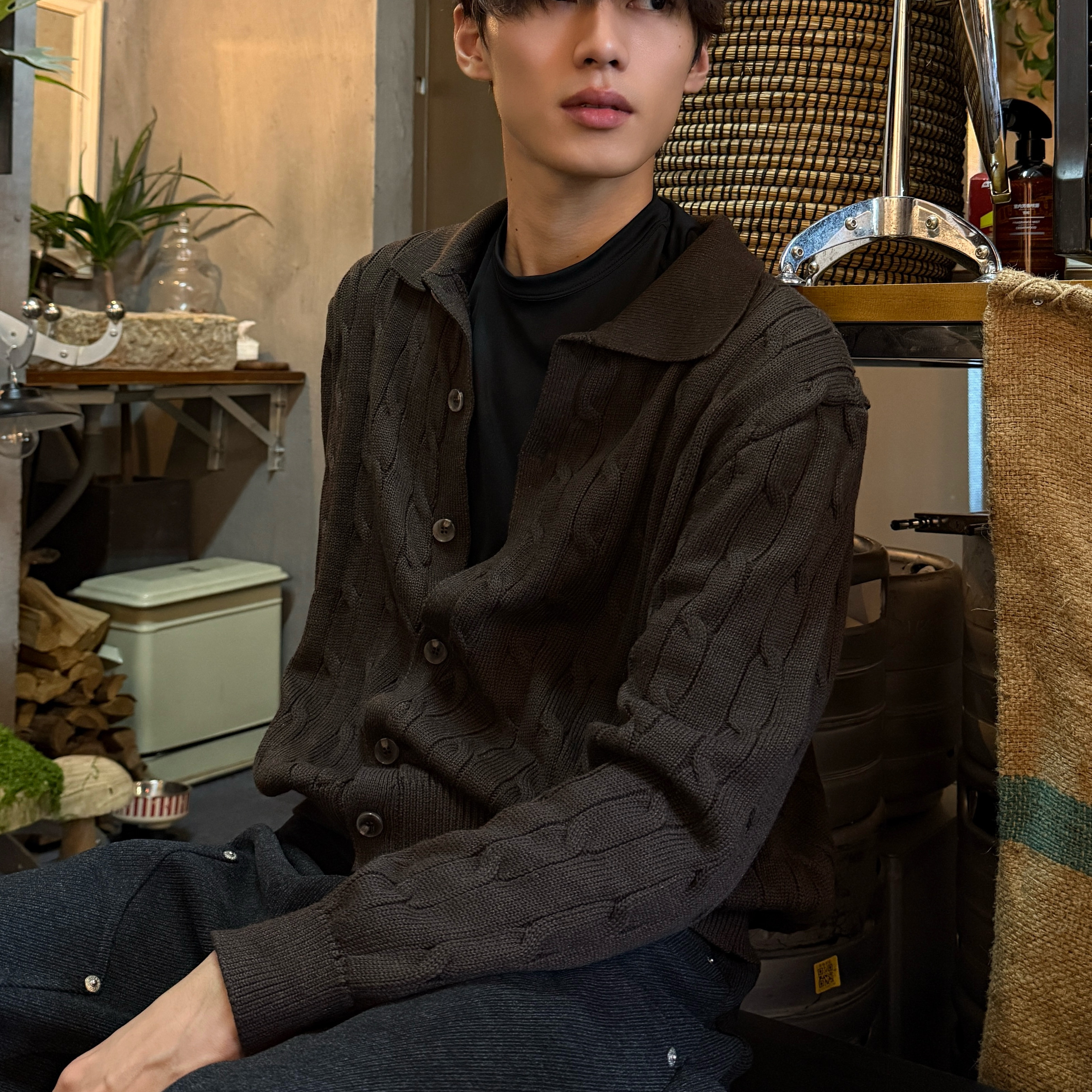 ICE UP 绞花polo领贝壳扣新疆长绒棉休闲老钱风纽扣针织开衫外套