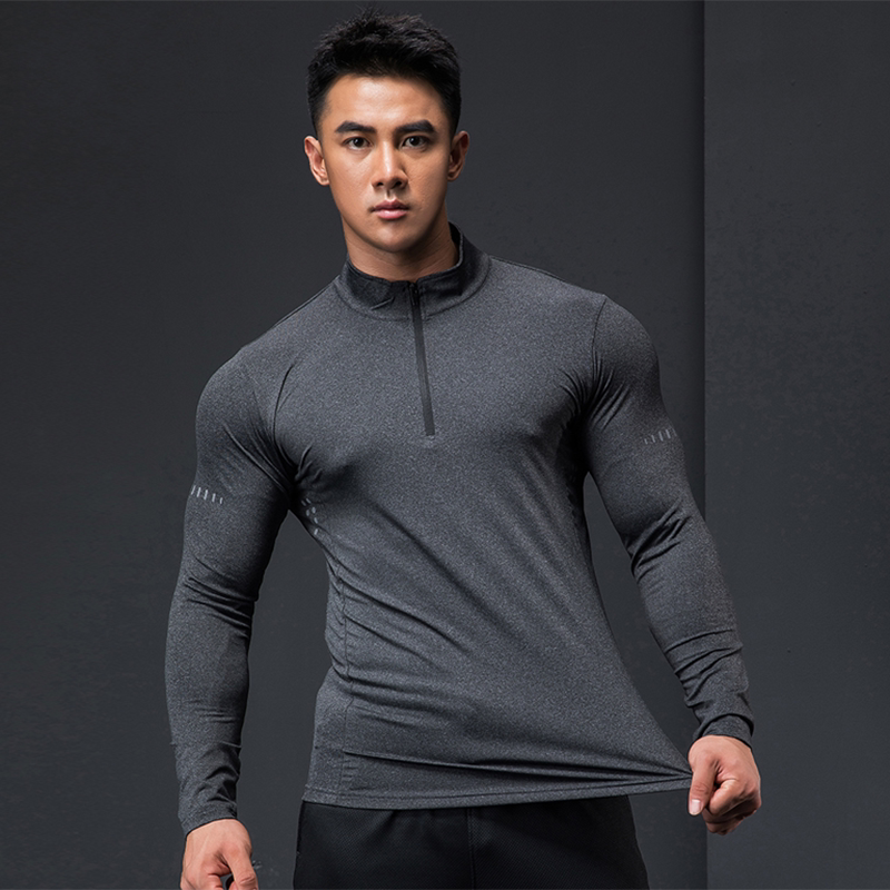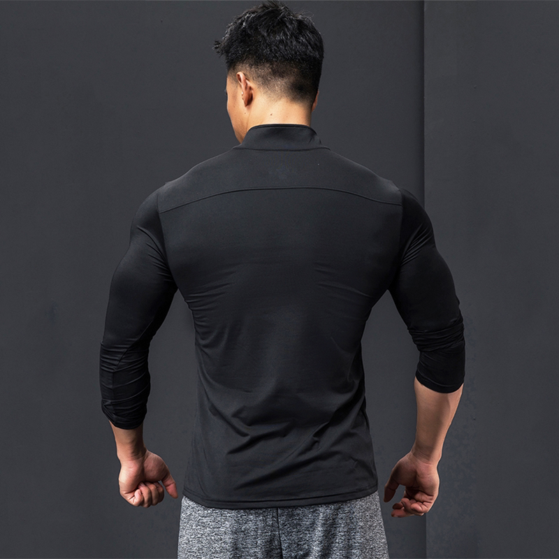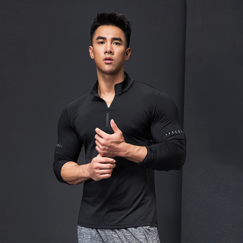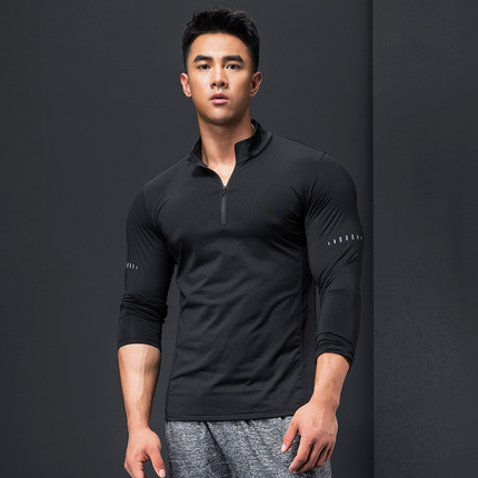 撸铁狼跑步骑行训练健身衣服男士紧身速干长袖半拉链立领运动上衣