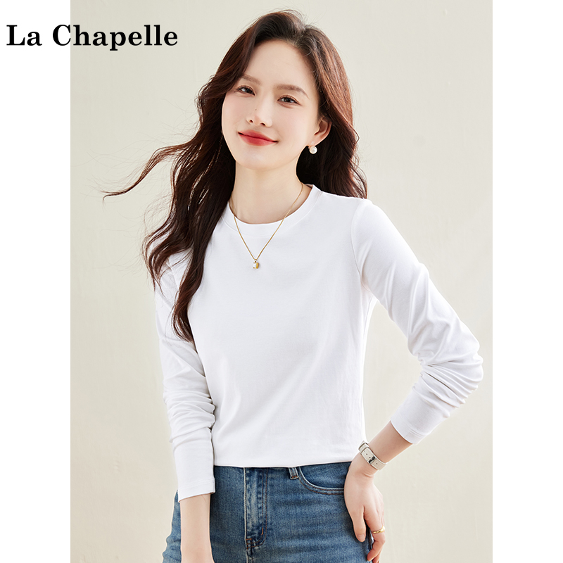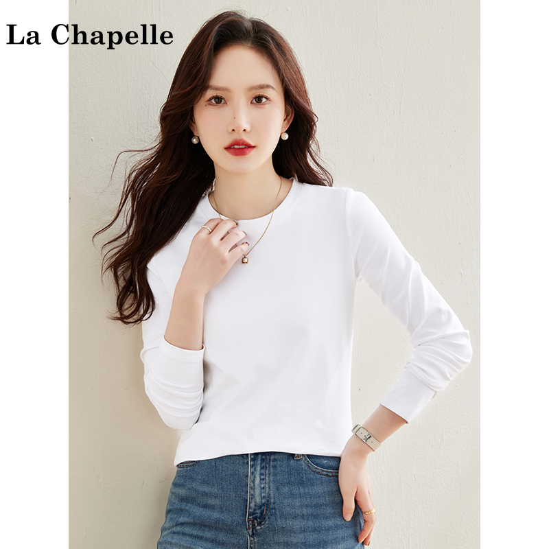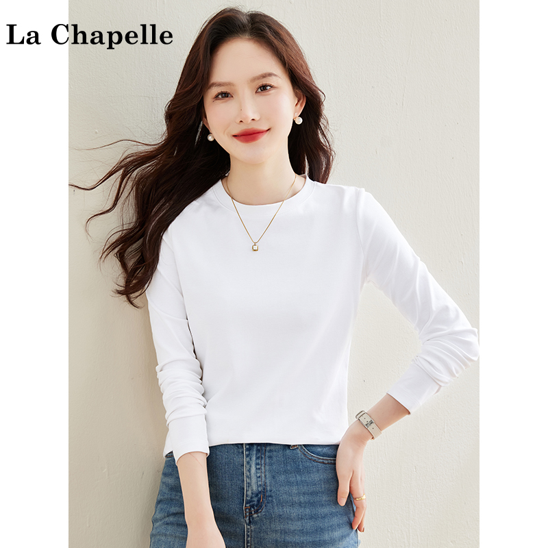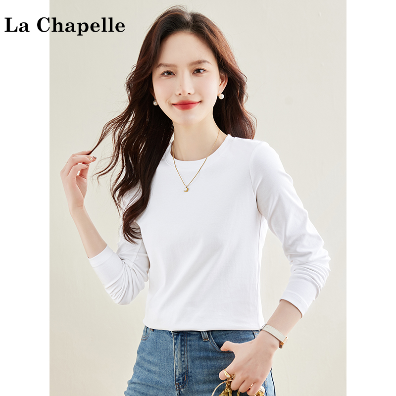 拉夏贝尔白色纯棉长袖t恤女2025新款秋季薄款宽松内搭打底衫上衣