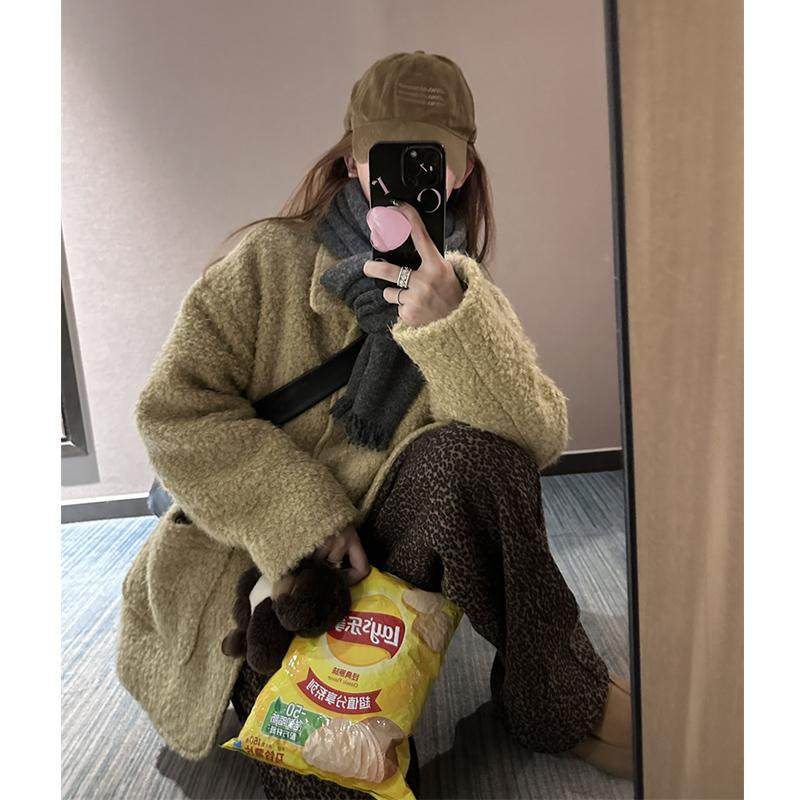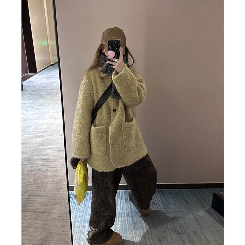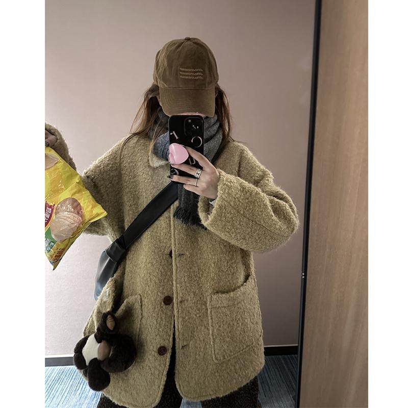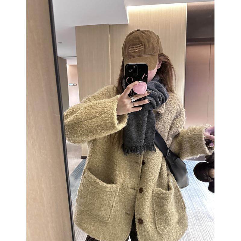 泡菜国D制面料”黄油“羊毛外套女大口袋保暖毛呢外套大衣女秋冬