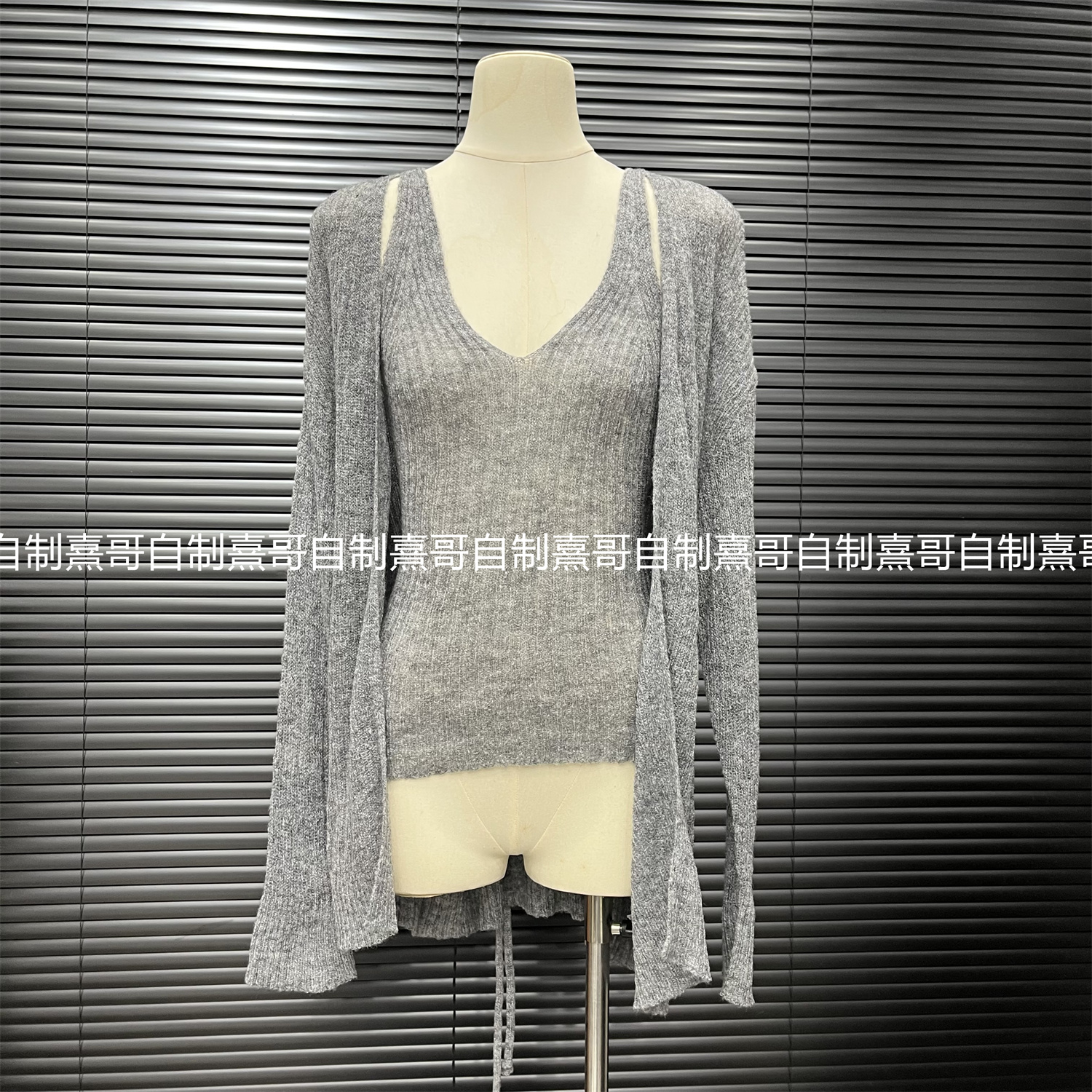 法式小众设计感慵懒风针织开衫防晒披肩吊带背心上衣百搭两件套潮