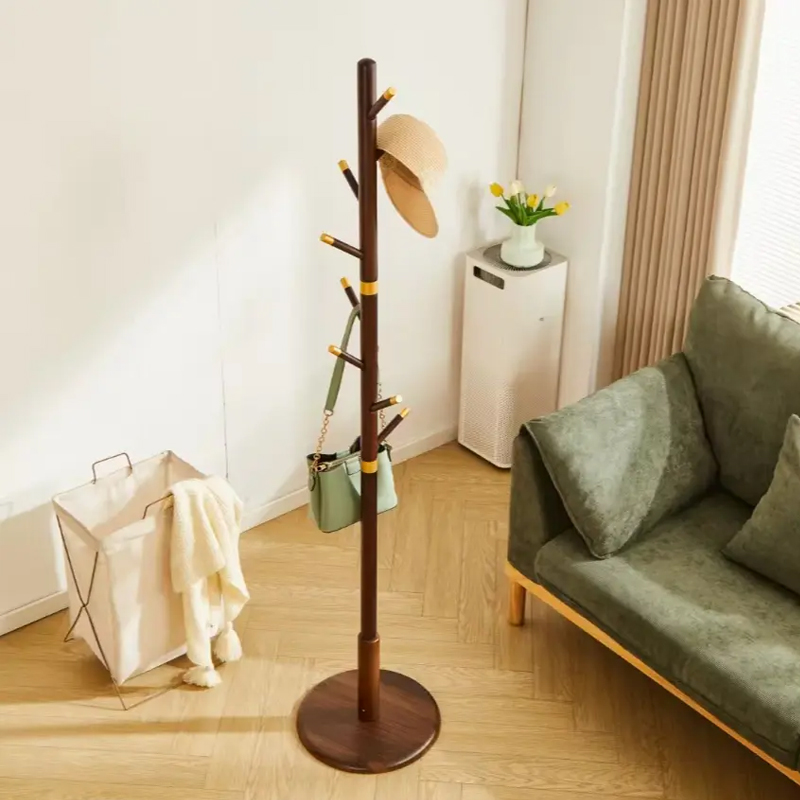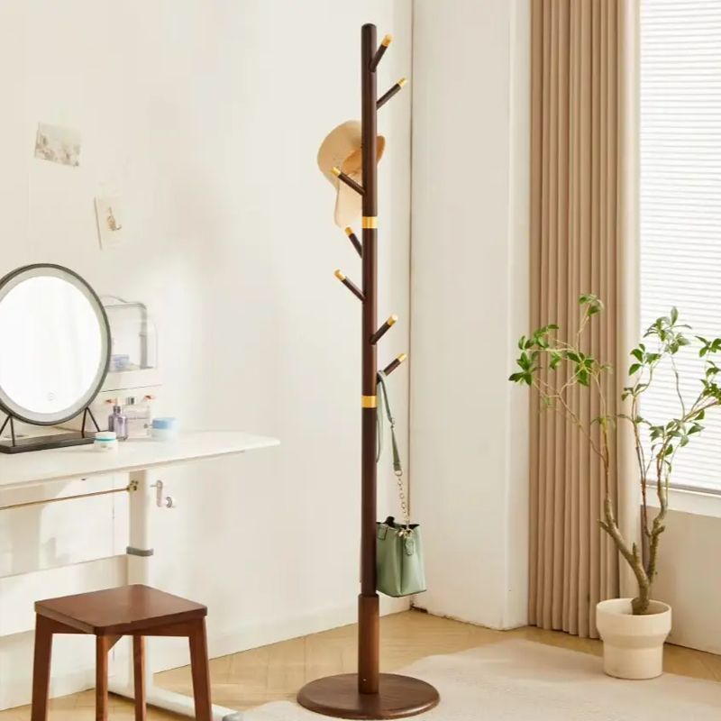 博盈家具实木衣帽架落地卧室挂衣架简约现代铜素款家用单杆式衣架