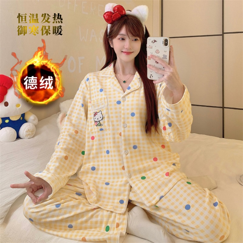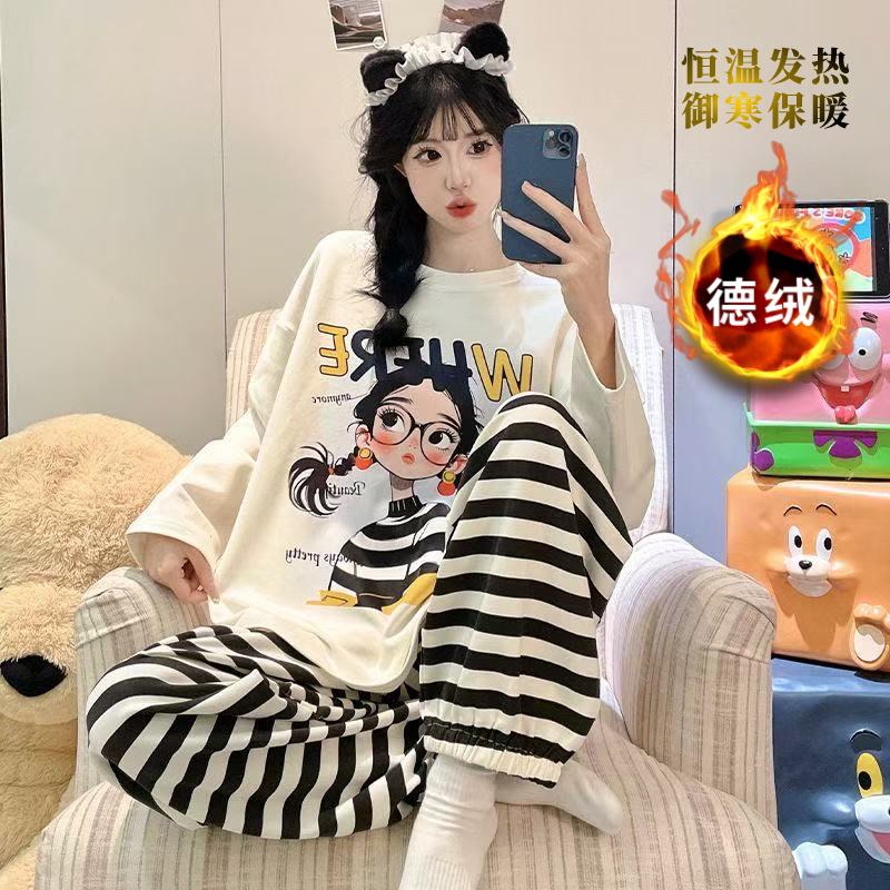 睡衣冬季男女珊瑚绒加厚加绒长袖可爱宽松家居服翻领德绒套装L