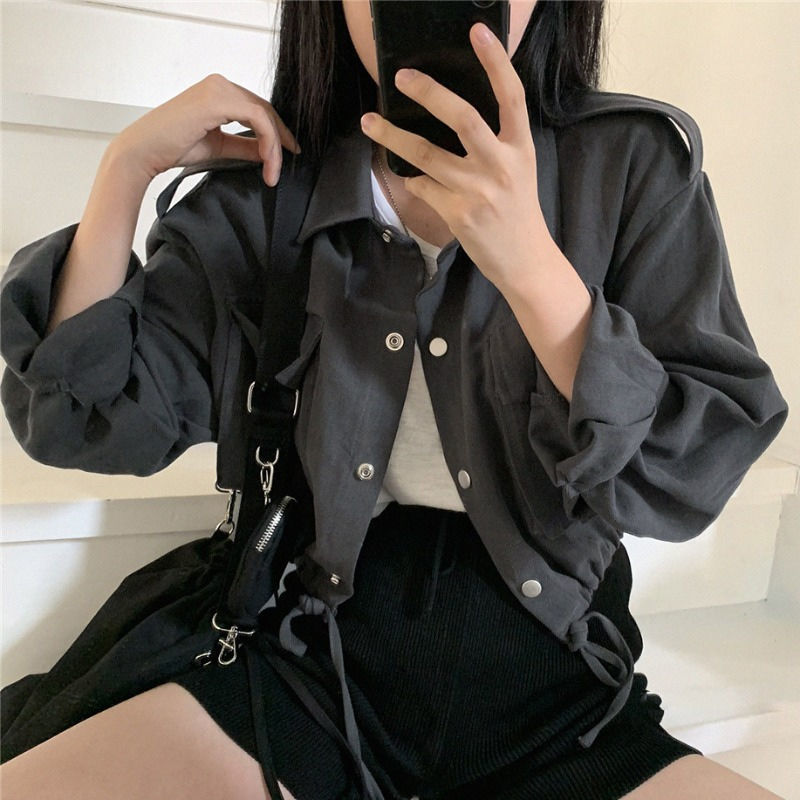 2024春季短款工装外套女韩版百搭小个子夹克开衫收腰棒球服外衣
