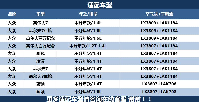 适配高尔夫7嘉旅空气滤空调滤芯格凌渡蔚揽蔚领马勒二滤保养套装