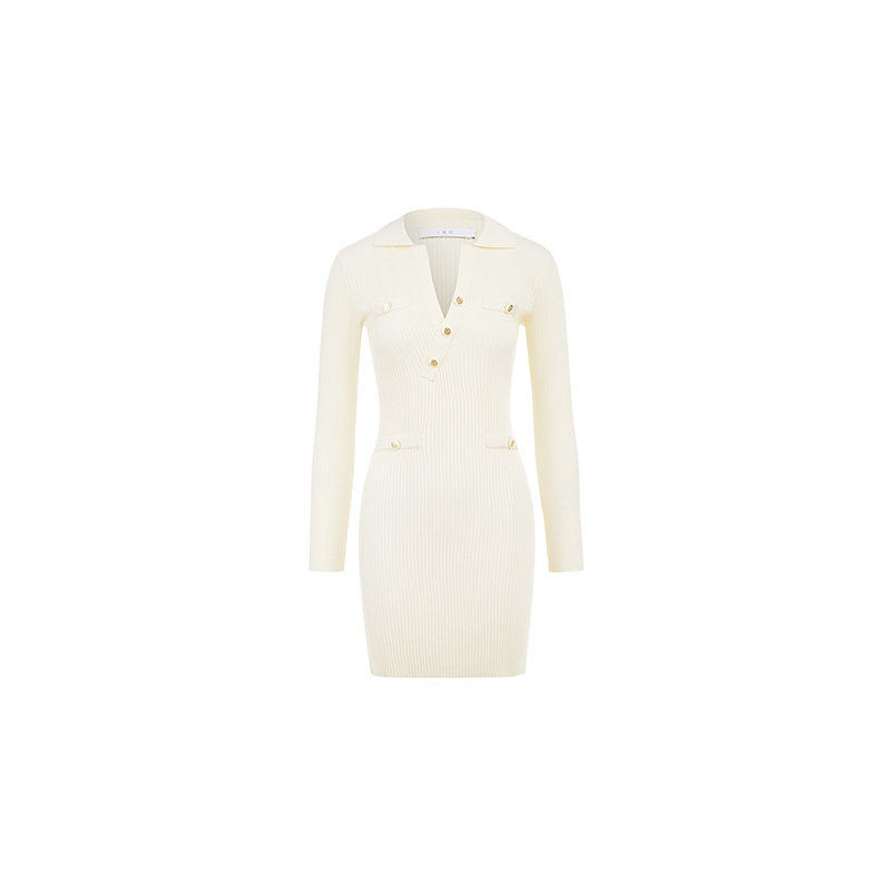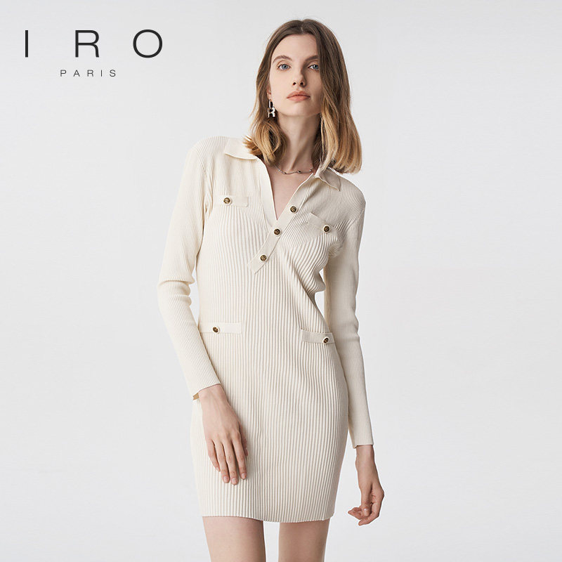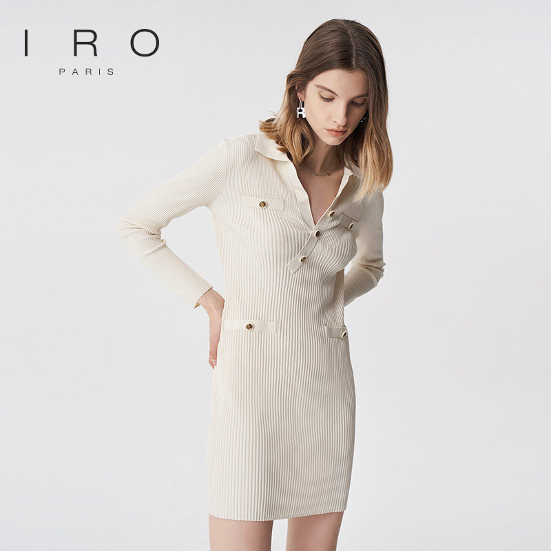 IRO Night 春秋款女装气质修身斜扣V领气质简约针织连衣裙