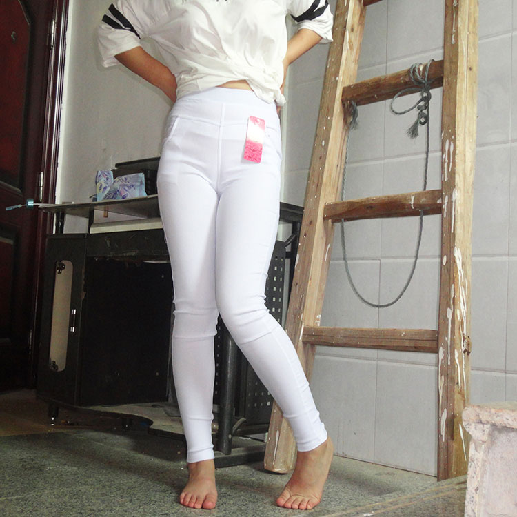 松紧腰白色黑色女裤批发春夏高腰九分休闲显瘦打底裤小脚铅笔长裤