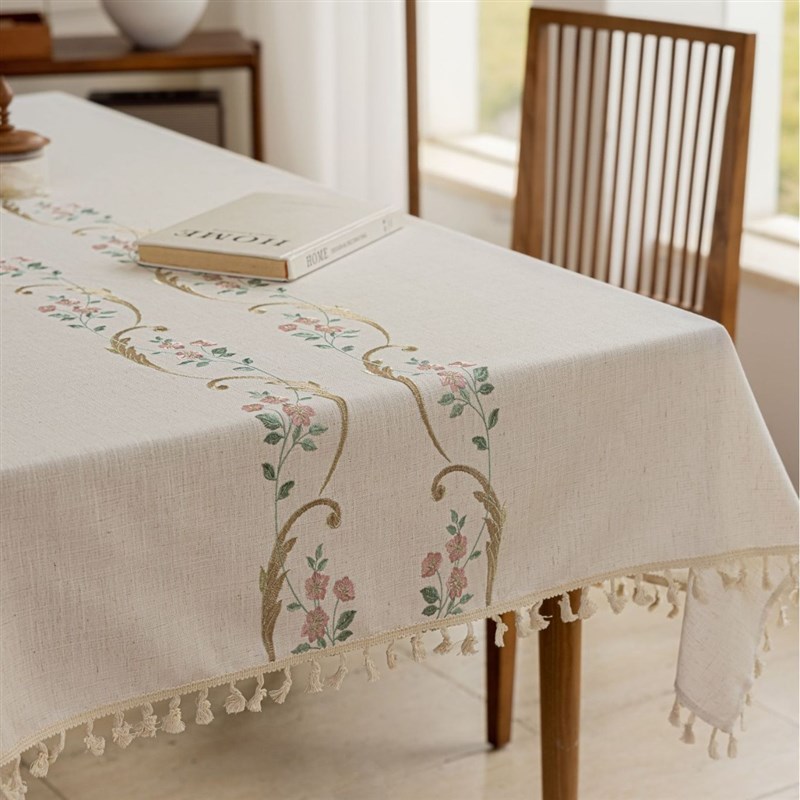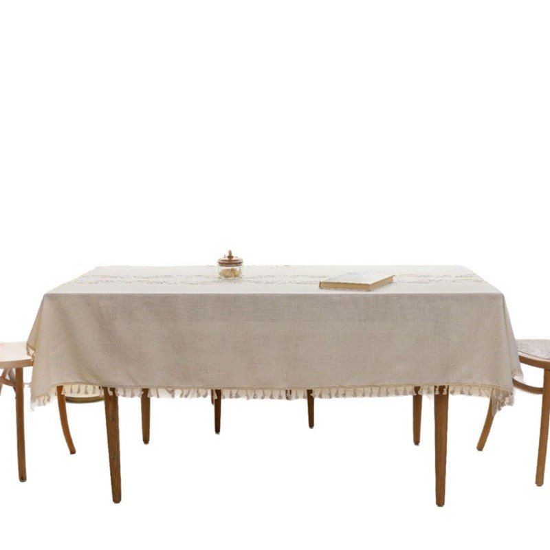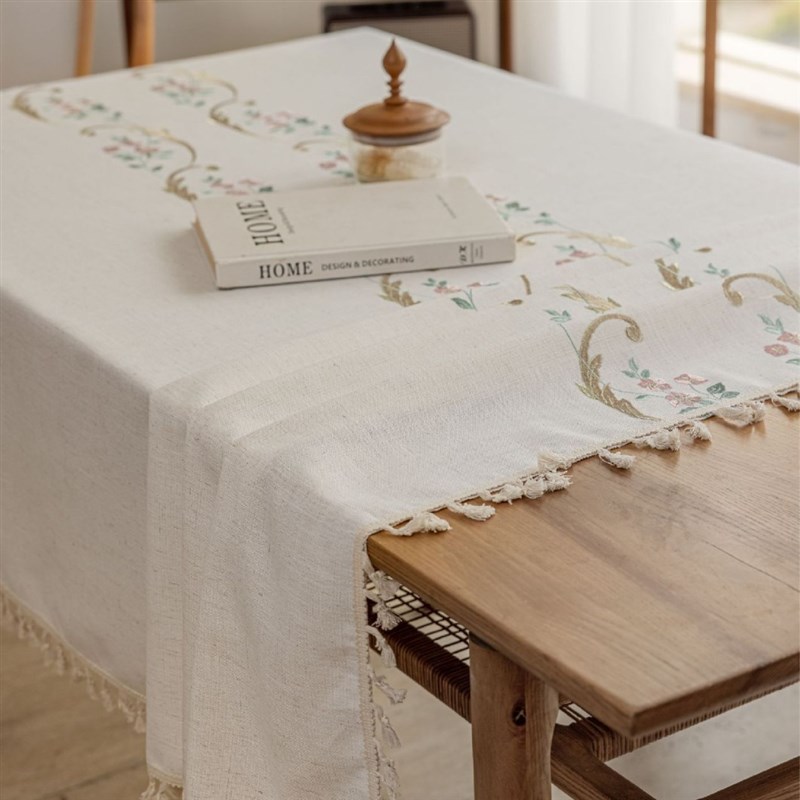 青色兰花米长g方形餐桌布艺桌布棉麻文艺北欧ins风刺绣简约茶几盖