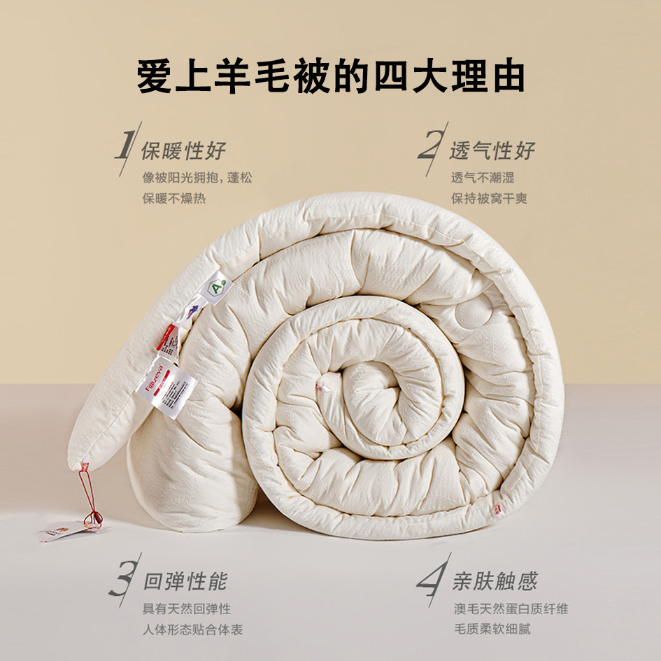 恒源祥彩羊澳洲进口羊毛被100澳洲纯羊毛冬被被芯春秋加厚暖被子