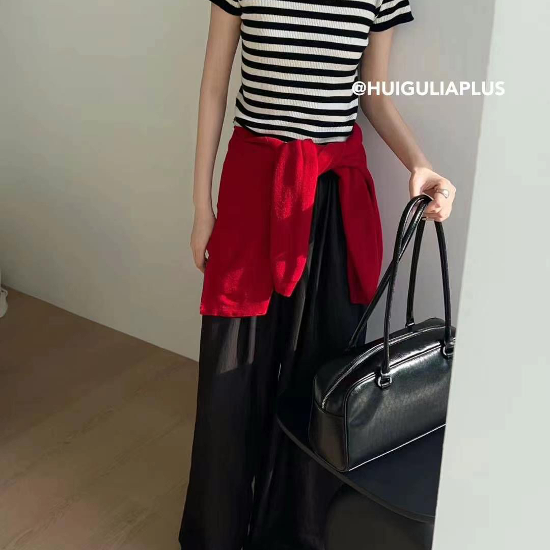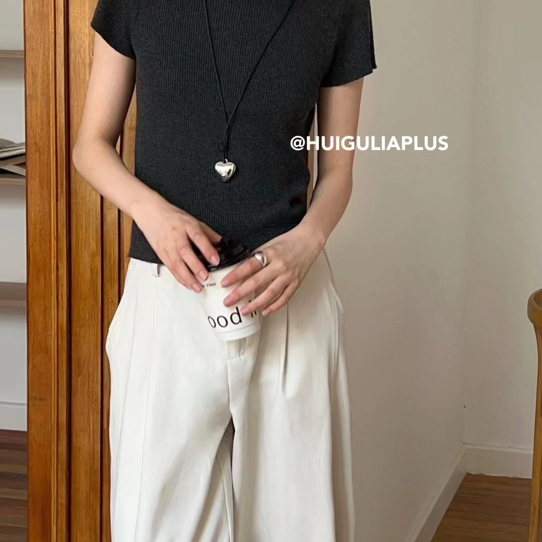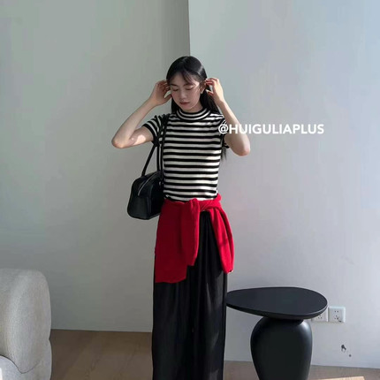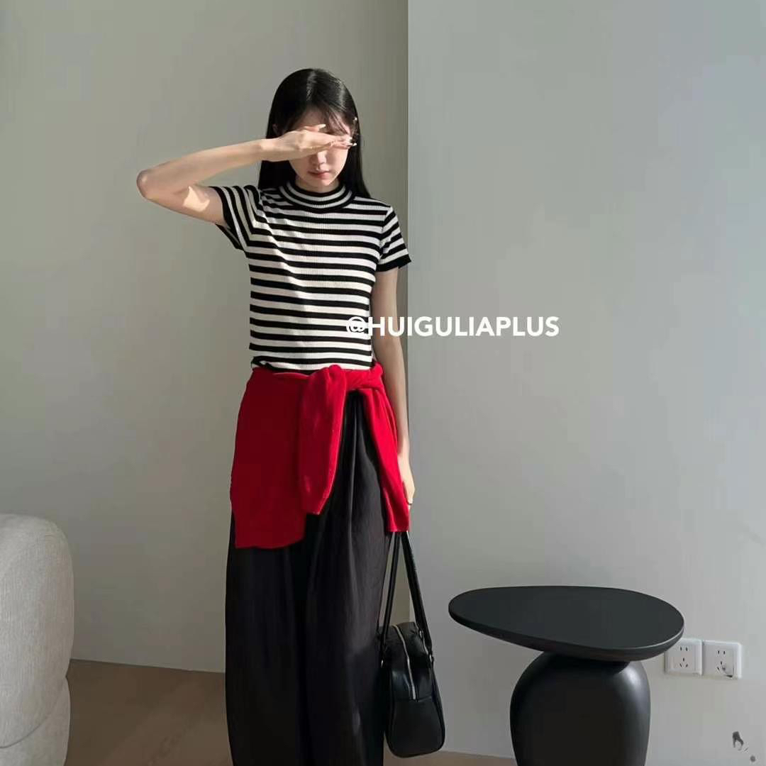 灰姑娘新修身圆领简约通勤显瘦百搭条纹短袖针织衫(含6羊毛)710