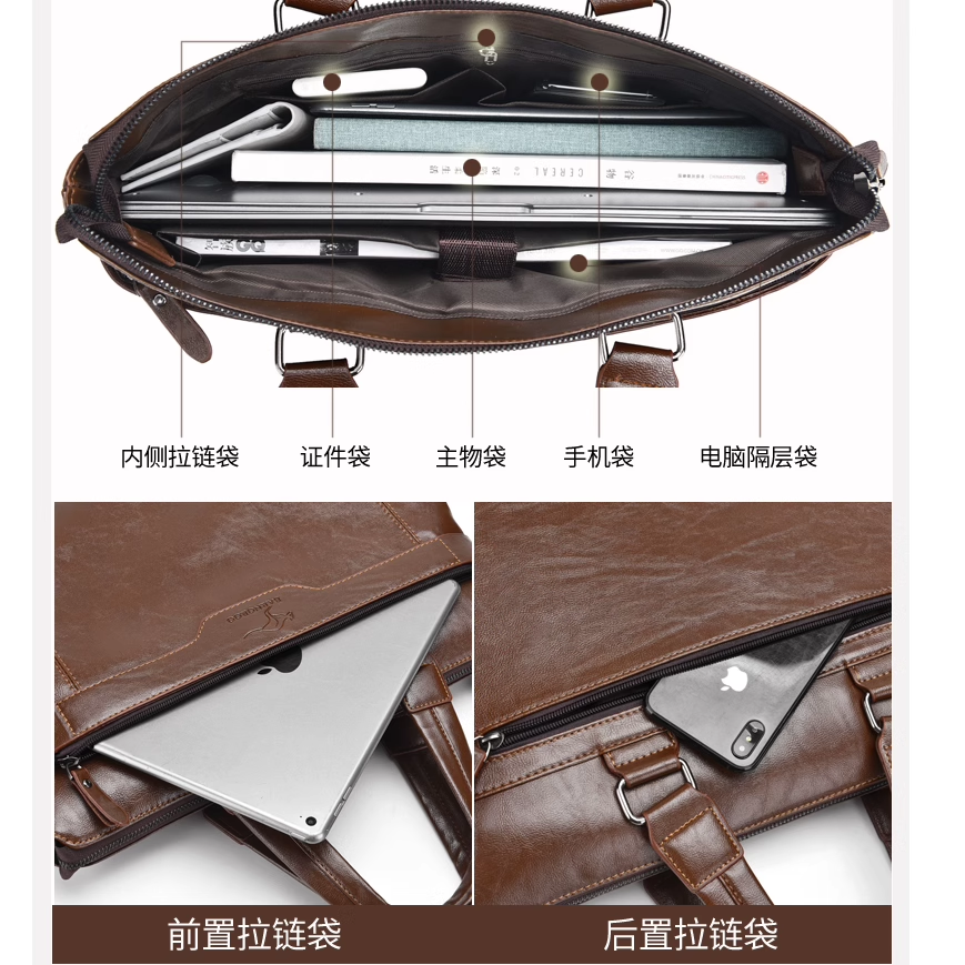 商务手提包男士公文包15.6寸电脑包中年大容量男包横款单肩斜挎包