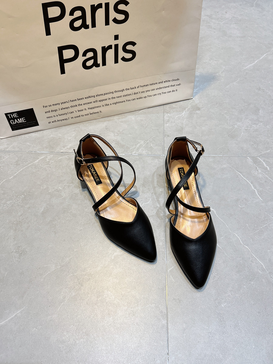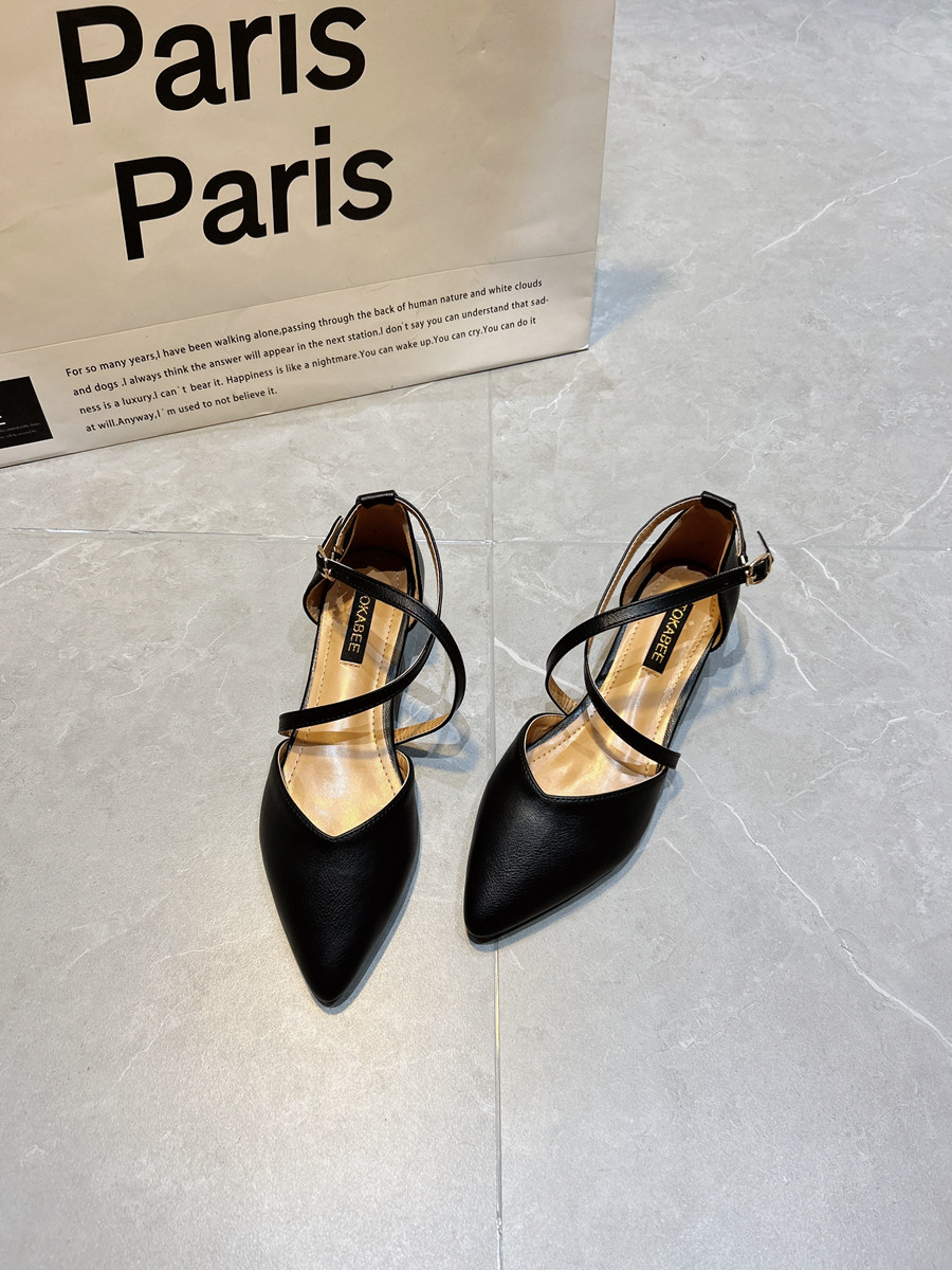 法式包头凉鞋女粗跟2025春夏新款复古低跟中空单鞋交叉绑带女鞋41