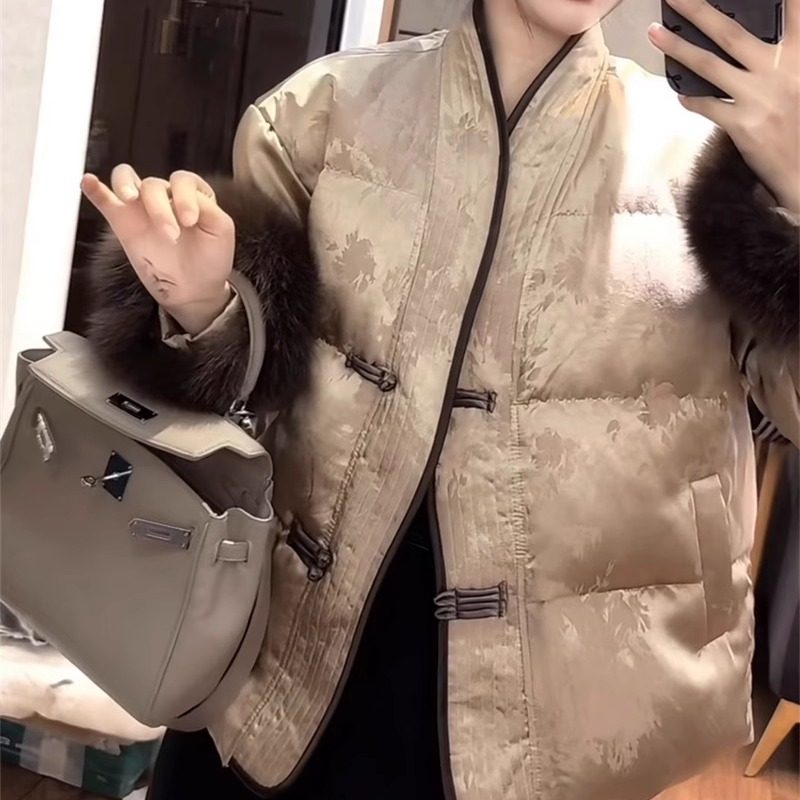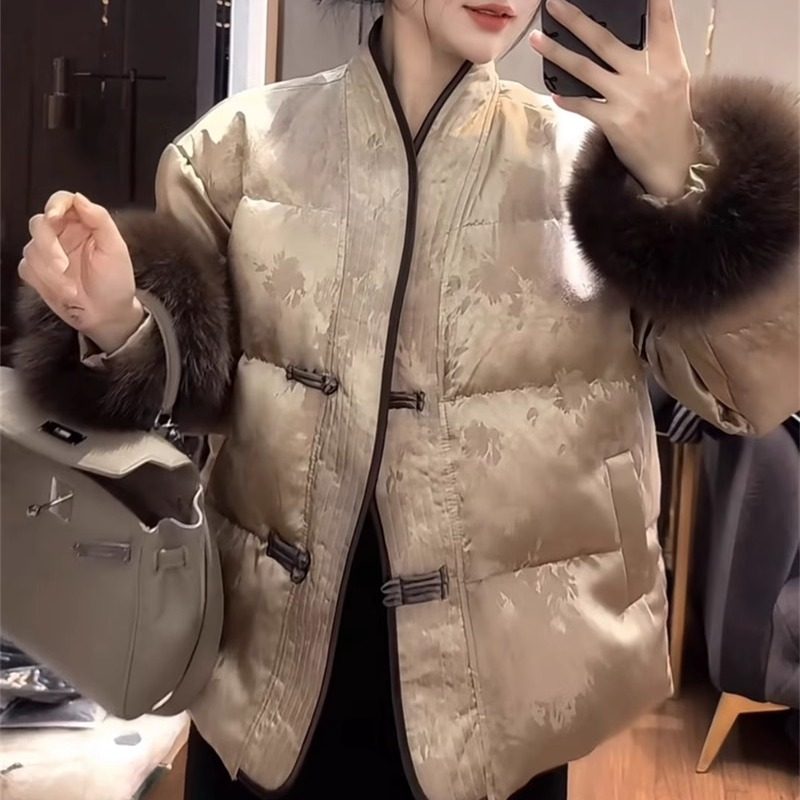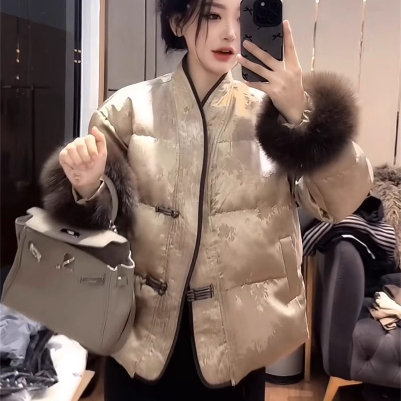 欧洲站网红爆款高级新中式国风洋气毛毛袖短款显瘦提花女士外套潮