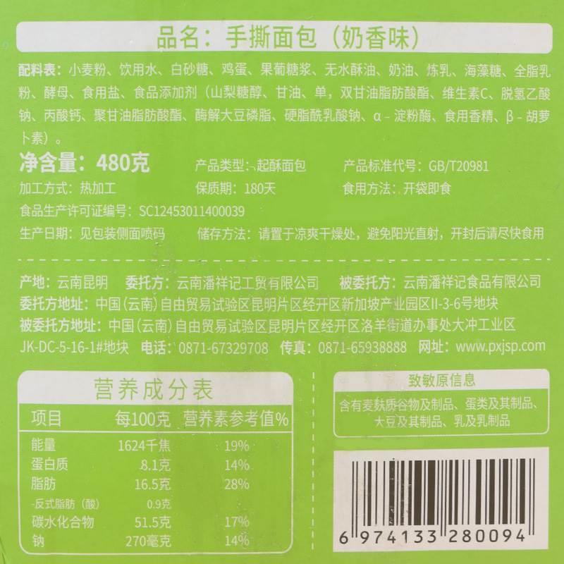 潘祥记手撕面包早餐整箱480g手撕面包甜点糕点早餐休闲小吃零食