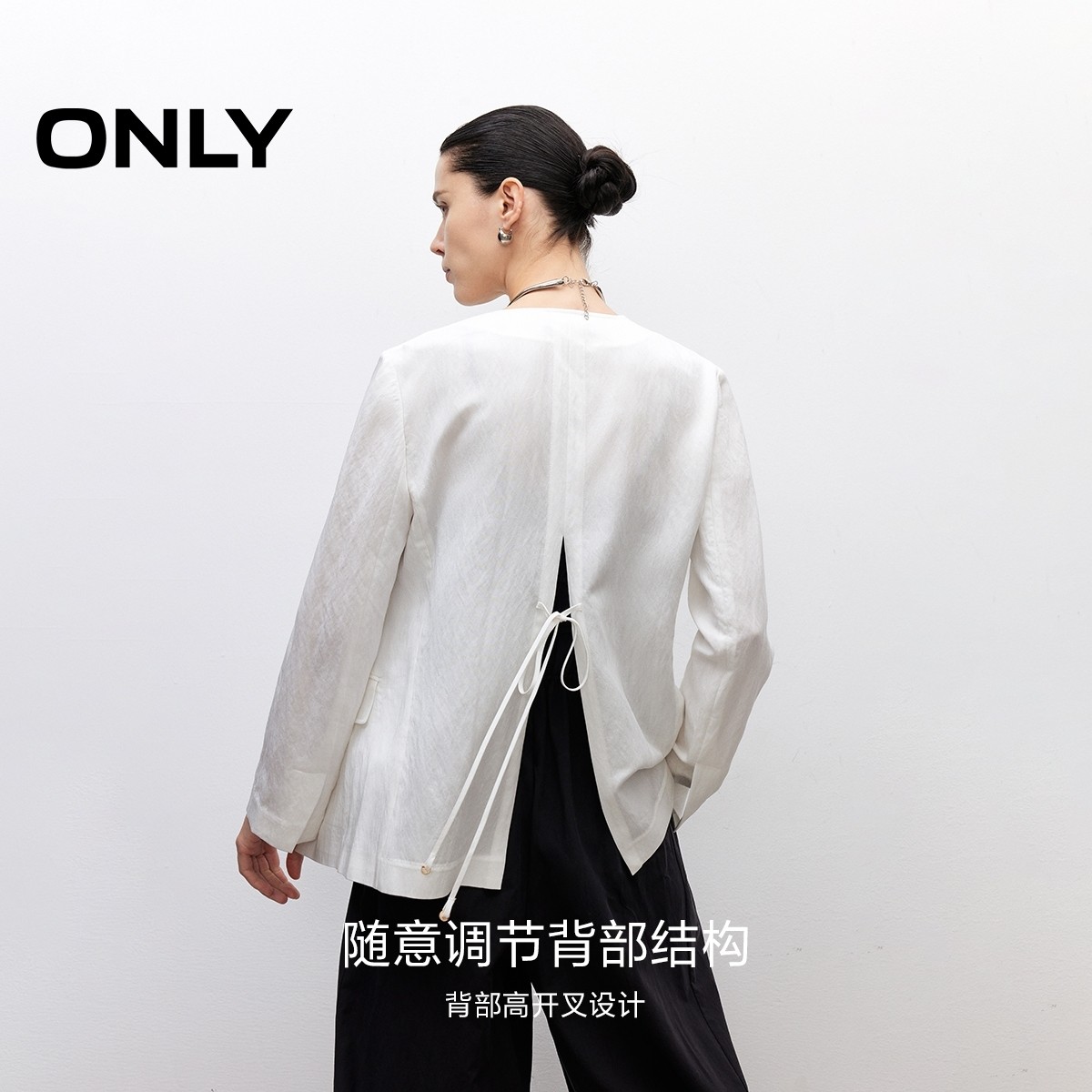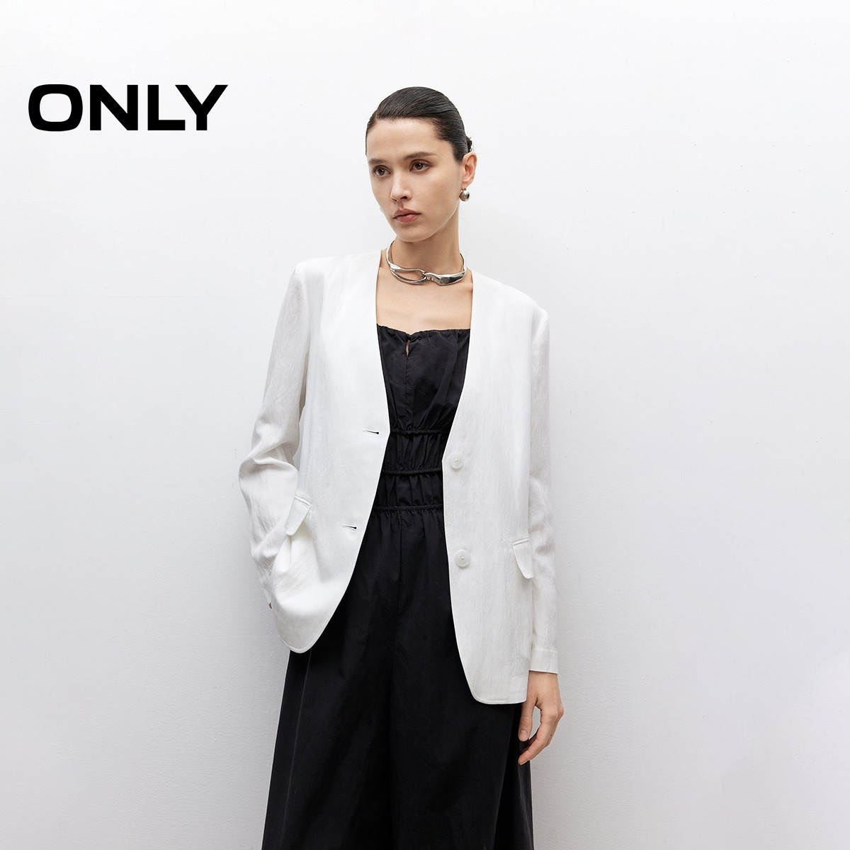 ONLY2025冬新款纯色正肩V领宽松显瘦长袖西装外套女|125308003
