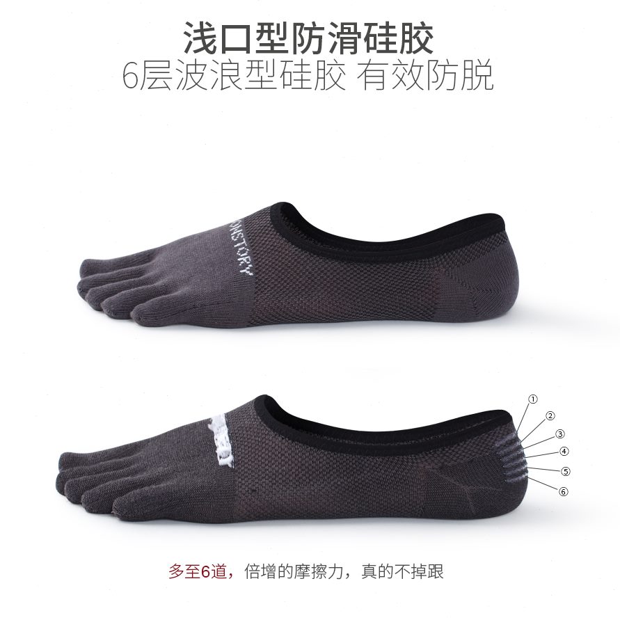 分纯棉网眼短袜透气防臭防滑五指袜男夏季薄款趾浅口脚趾隐形船袜