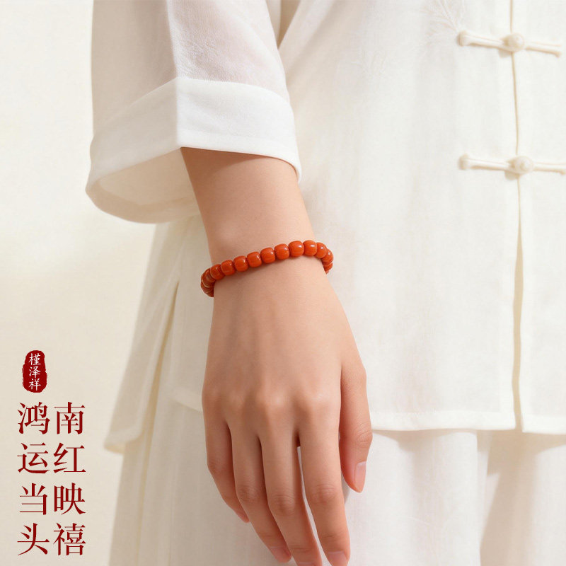 天然满肉南红玛瑙手链柿子红女红色宝石老型珠保山原矿本命年手串
