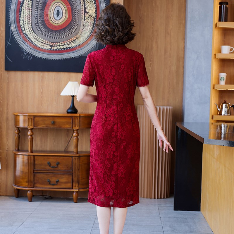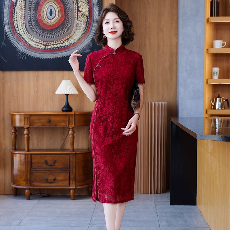 蕾丝旗袍改良版气质夏季新款2024婚宴妈妈优雅连衣裙女婚礼小个子