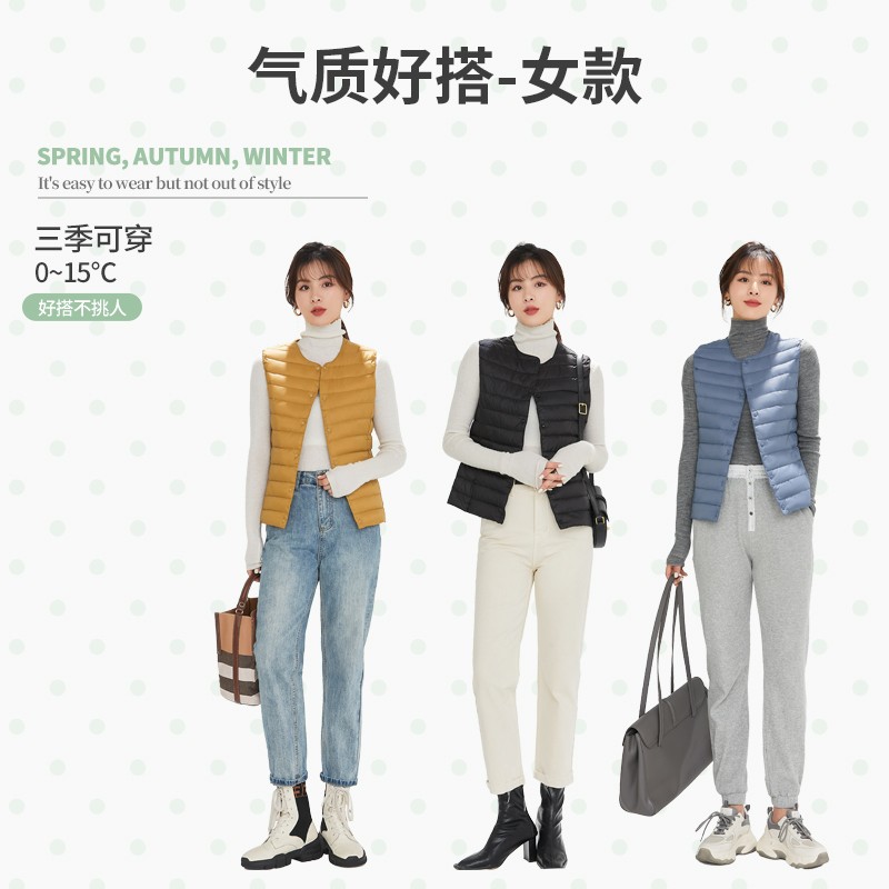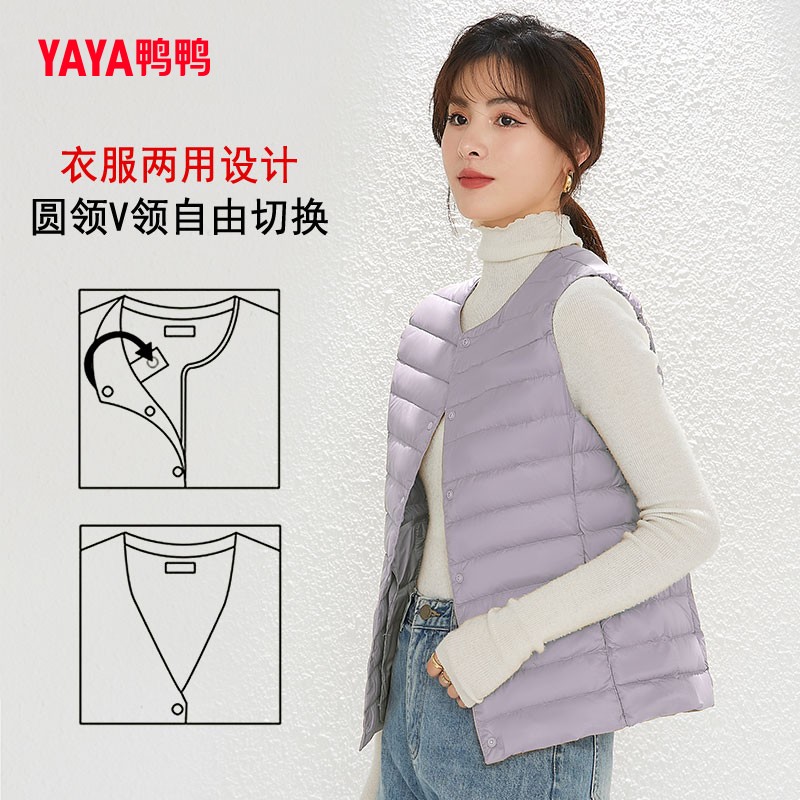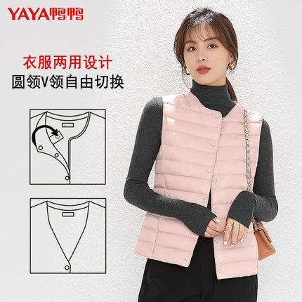 鸭鸭轻薄羽绒服马甲女V领秋冬新款基础修身背心内胆鸭绒马夹外套