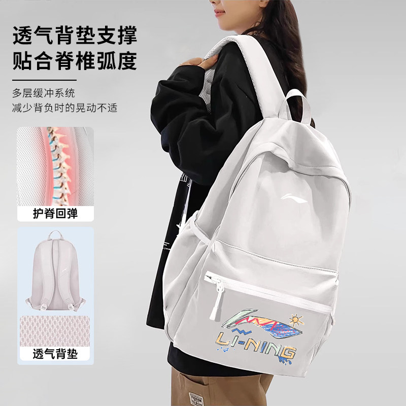 李宁双肩包女大容量书包高中大学生背包男新款2026新款正品运动包