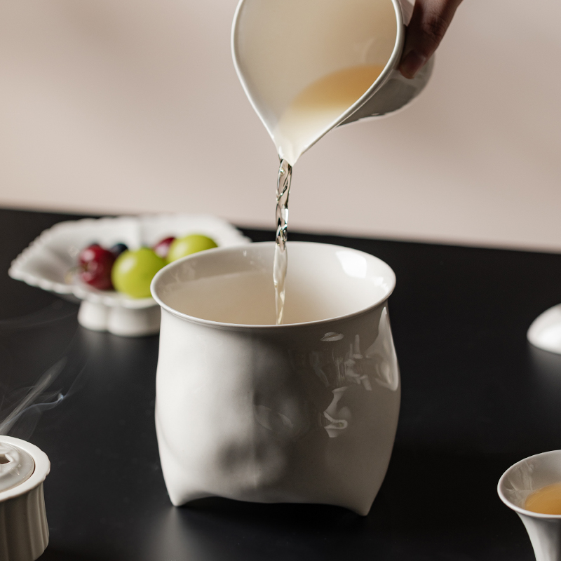 梵汝日式草木灰大建水家用大容量茶洗茶渣废水缸陶瓷水盂茶道配件