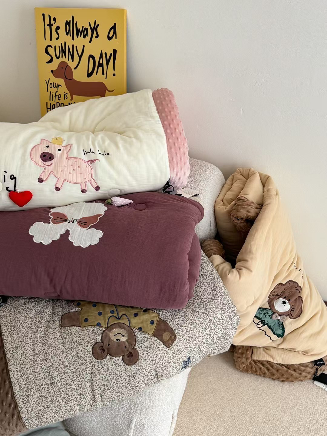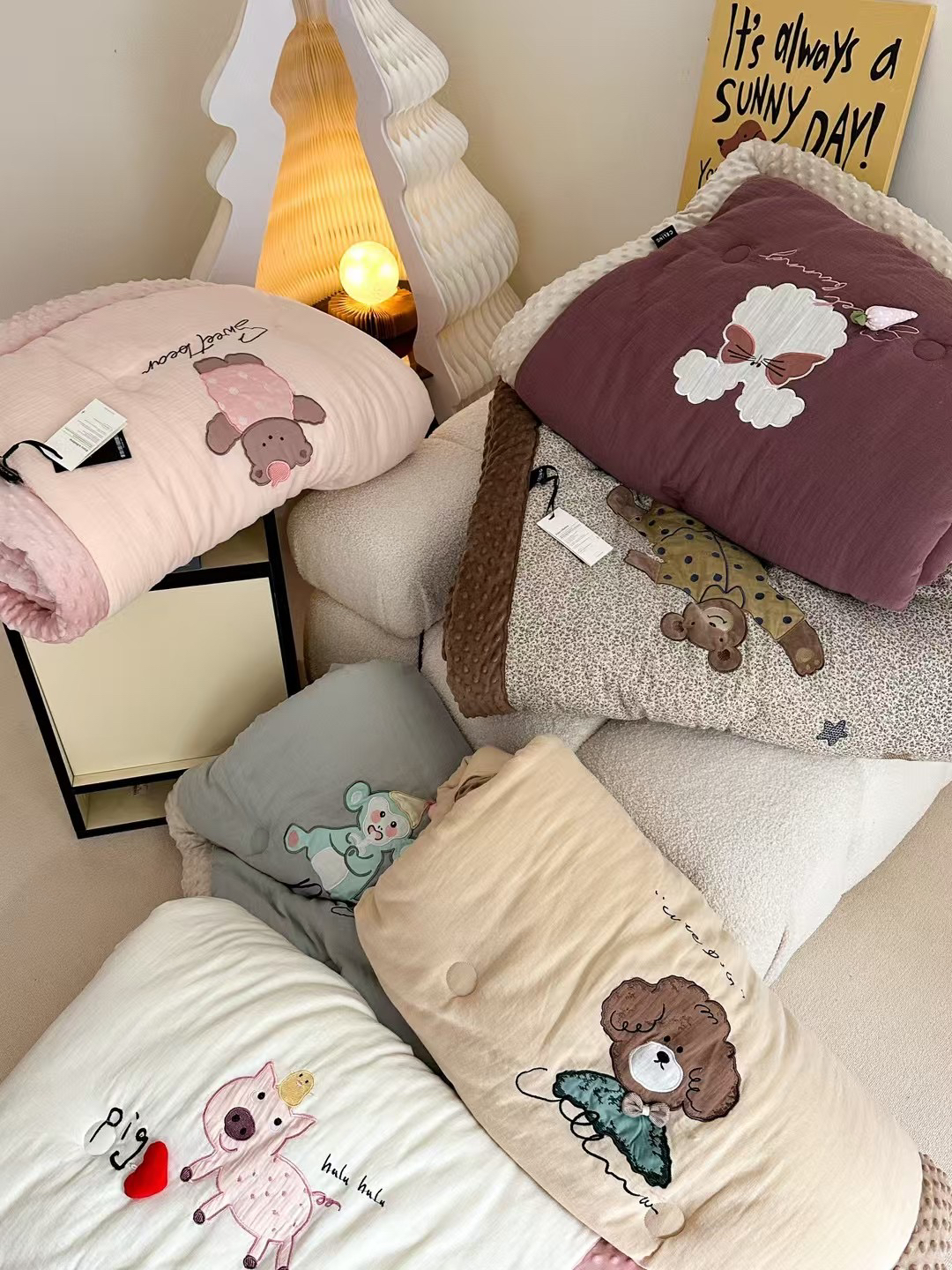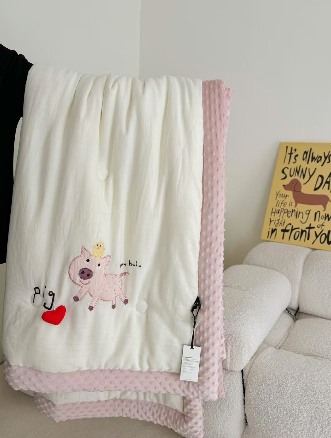 A类母婴级春秋全棉双层纱豆豆被单人儿童1.5冬被2米双人可水洗被