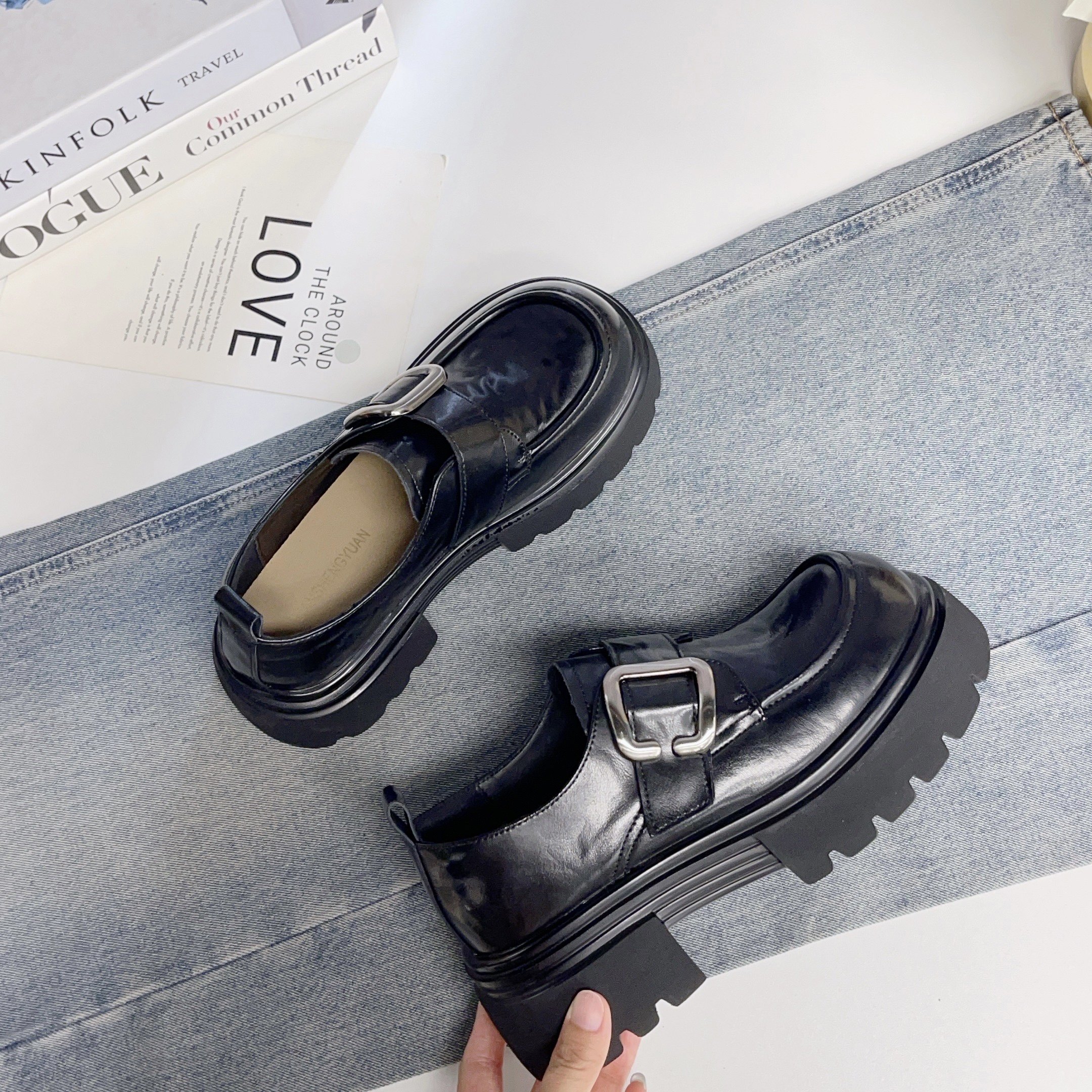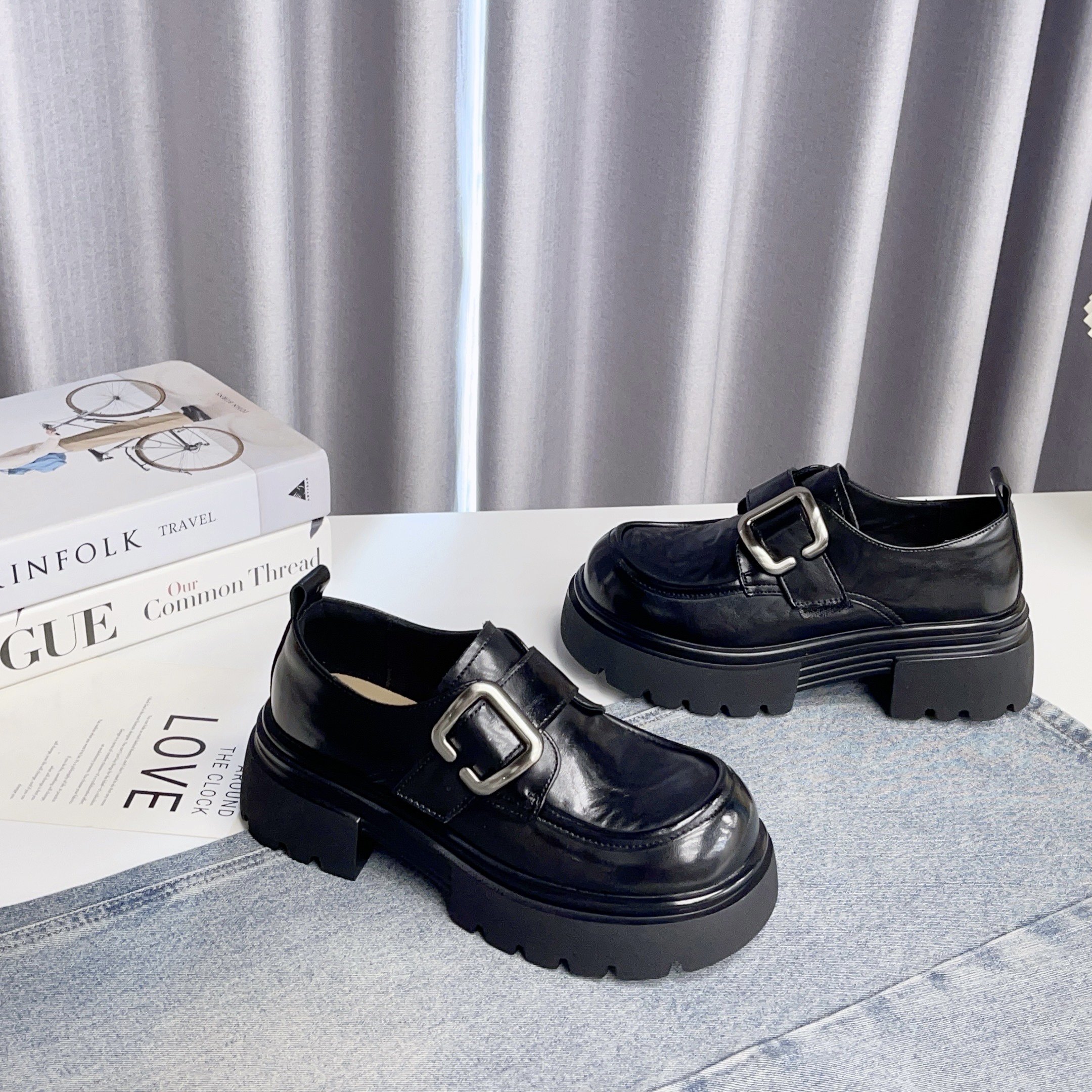 真皮厚底乐福鞋女2025秋季新款英伦风小皮鞋圆头玛丽珍单鞋女