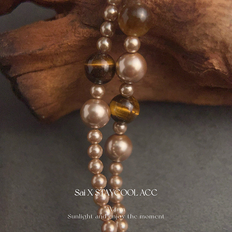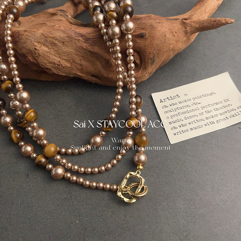 虎眼石美拉德色金棕色珠珠长款项链女士毛衣链多戴法110厘米