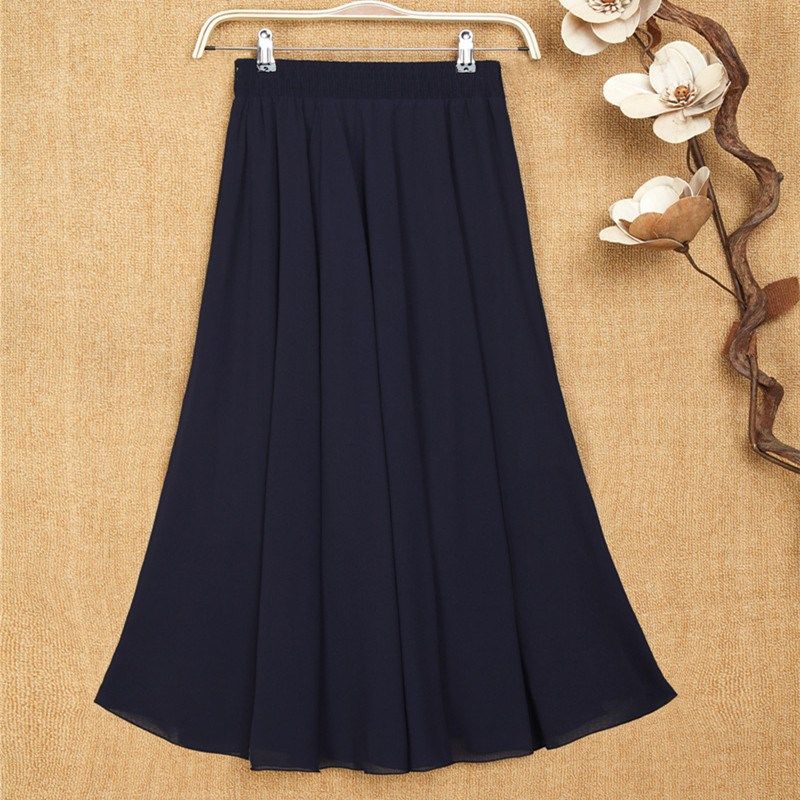 中老年半身裙夏季新款纯色跳舞裙长裙大摆裙中年妈妈高档雪纺裙子