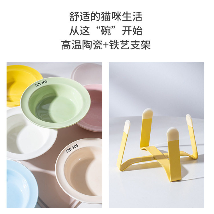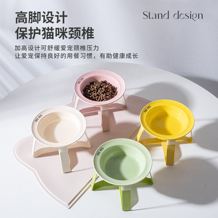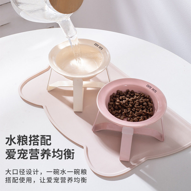 新款韩国bd护颈高脚狗猫粮碗饮水碗陶瓷猫碗防黑下巴宠物碗飞碟碗