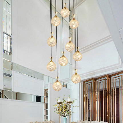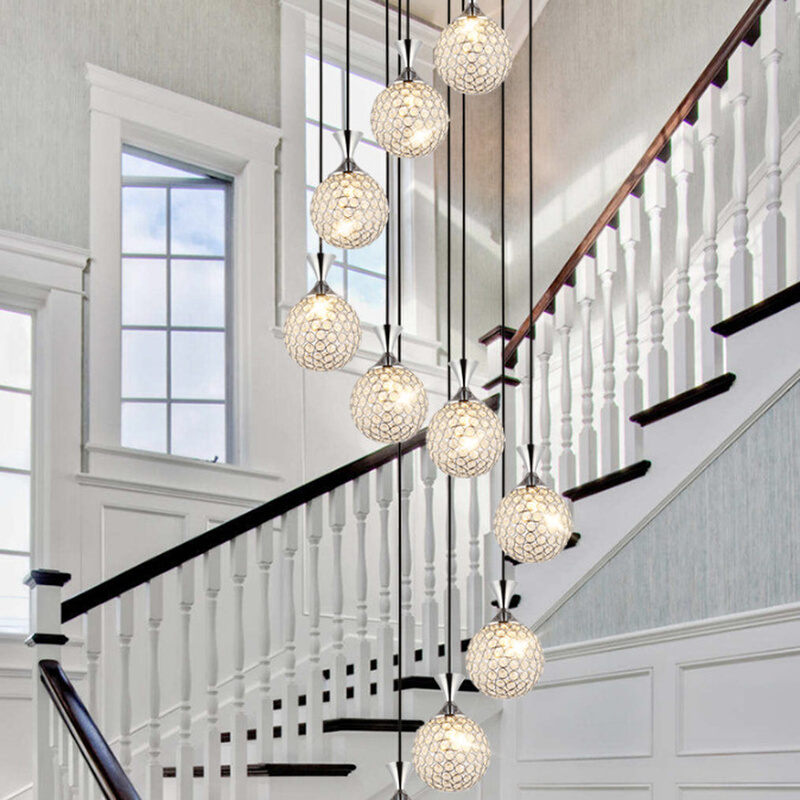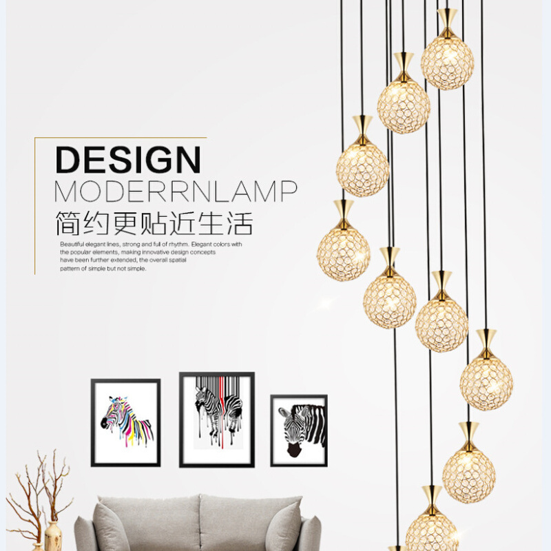 新款楼梯吊灯长吊灯复式楼别墅客厅餐厅水晶简约时尚旋转欧式灯具