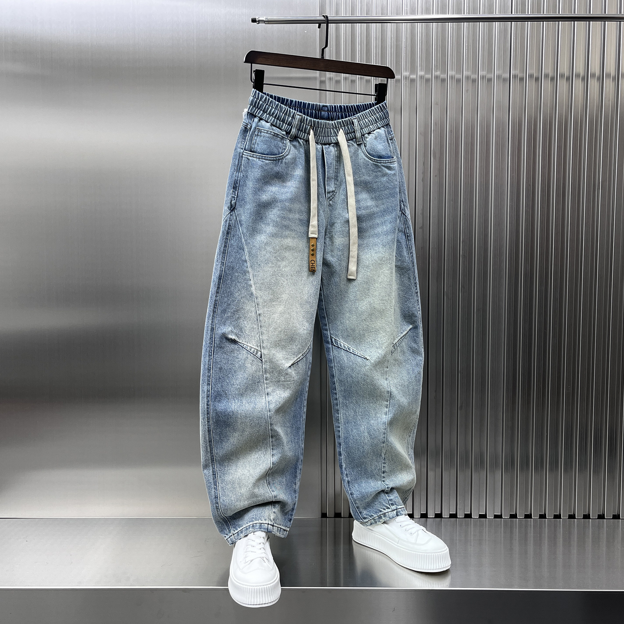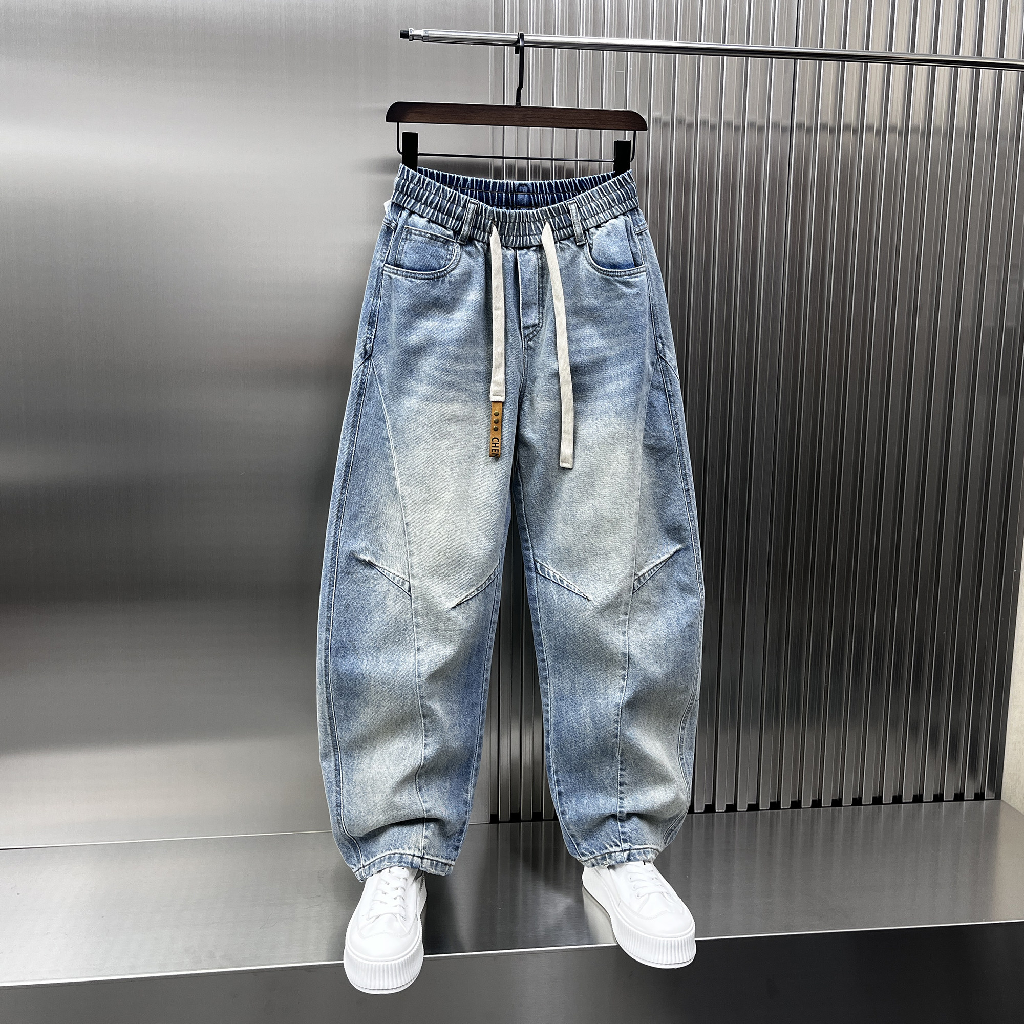 春季2025新款拼接复古水洗牛仔裤