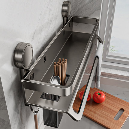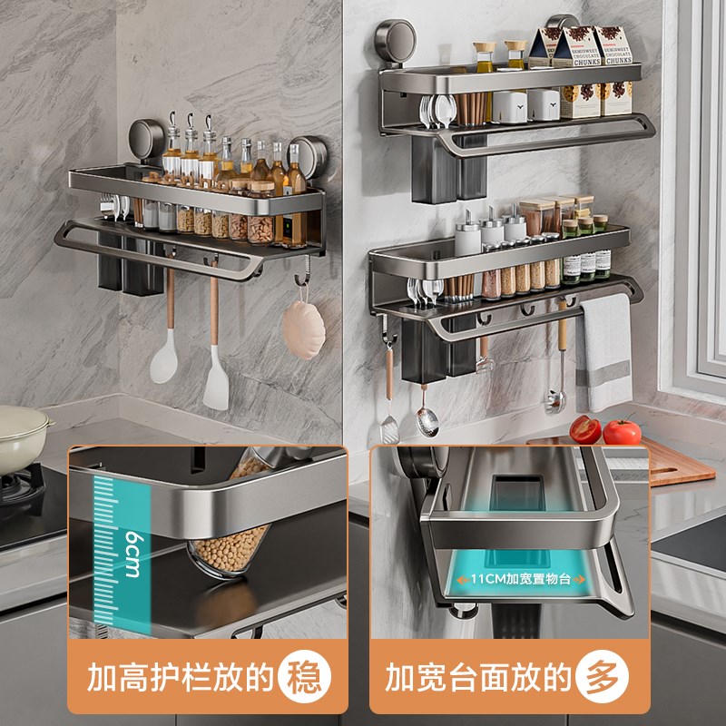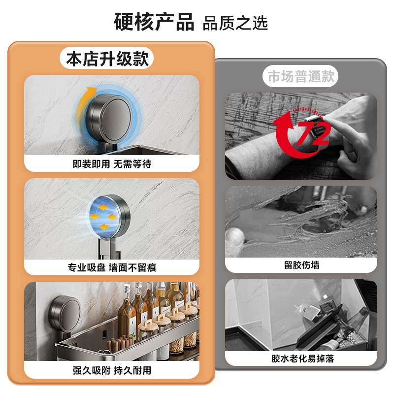 2024新款厨房吸盘置物架不锈钢调料架多功能壁挂调味X料品罐收纳