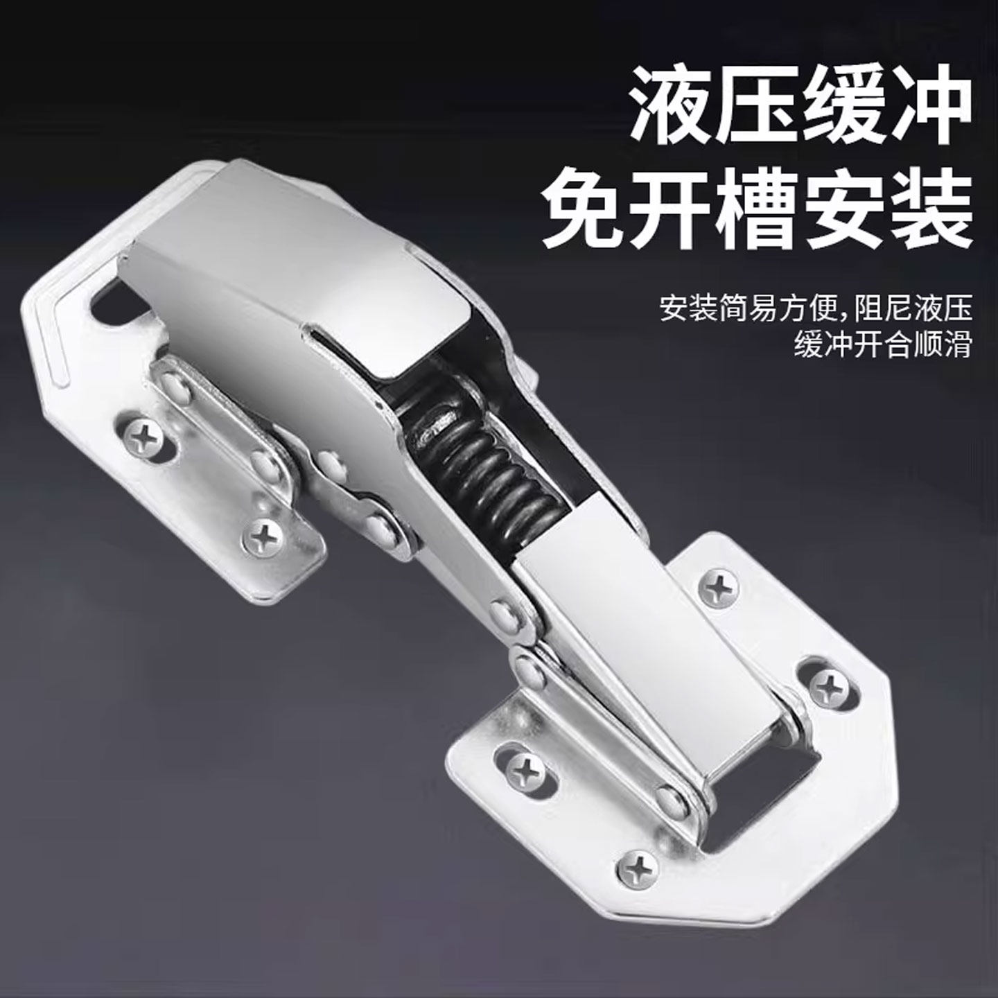 免打孔铰链橱柜门弹簧不锈钢合页衣柜五金阻尼液压缓冲折叠免开槽