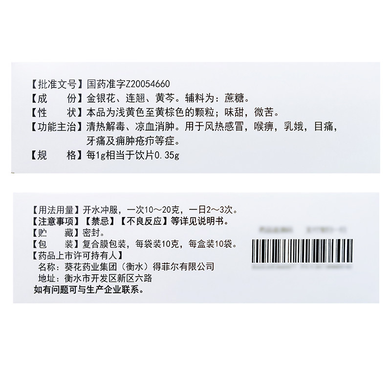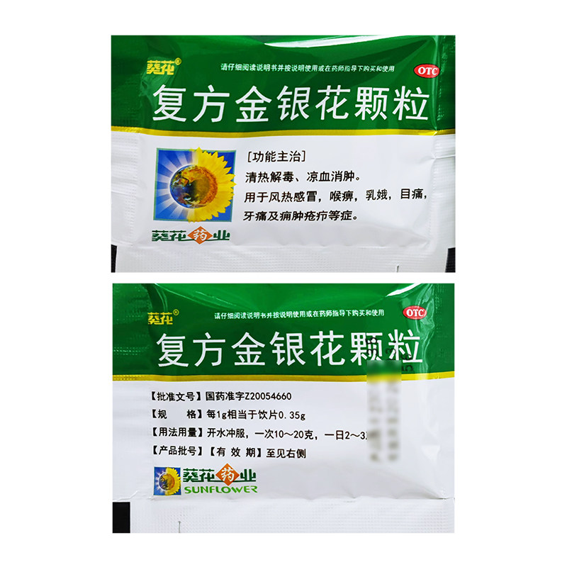 葵花复方金银花颗粒10袋清热解毒风热感冒喉痹乳蛾牙痛凉血消肿
